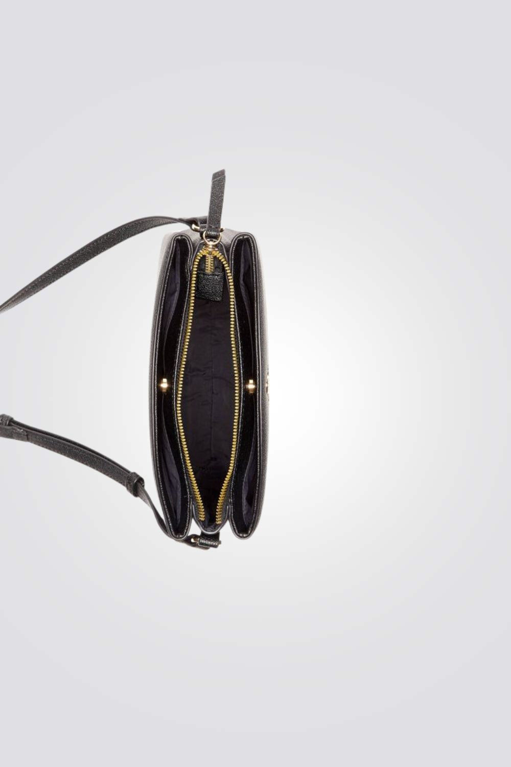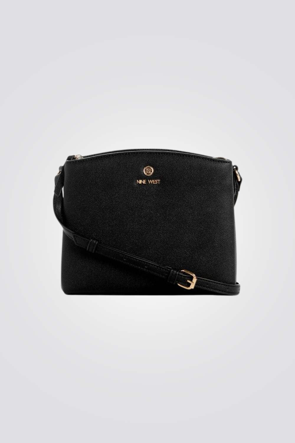 תיק צד לנשים מבית המותג NINE WEST,בצבע שחור, מעוצב בסטייל מודרני עדין שישתלב לצד כל סגנון לבוש שתבחרי. קל ונוח לנשיאה, בעל רצועה דקה ואלמנט עדין בזהב המוסיף סטייל למראה.