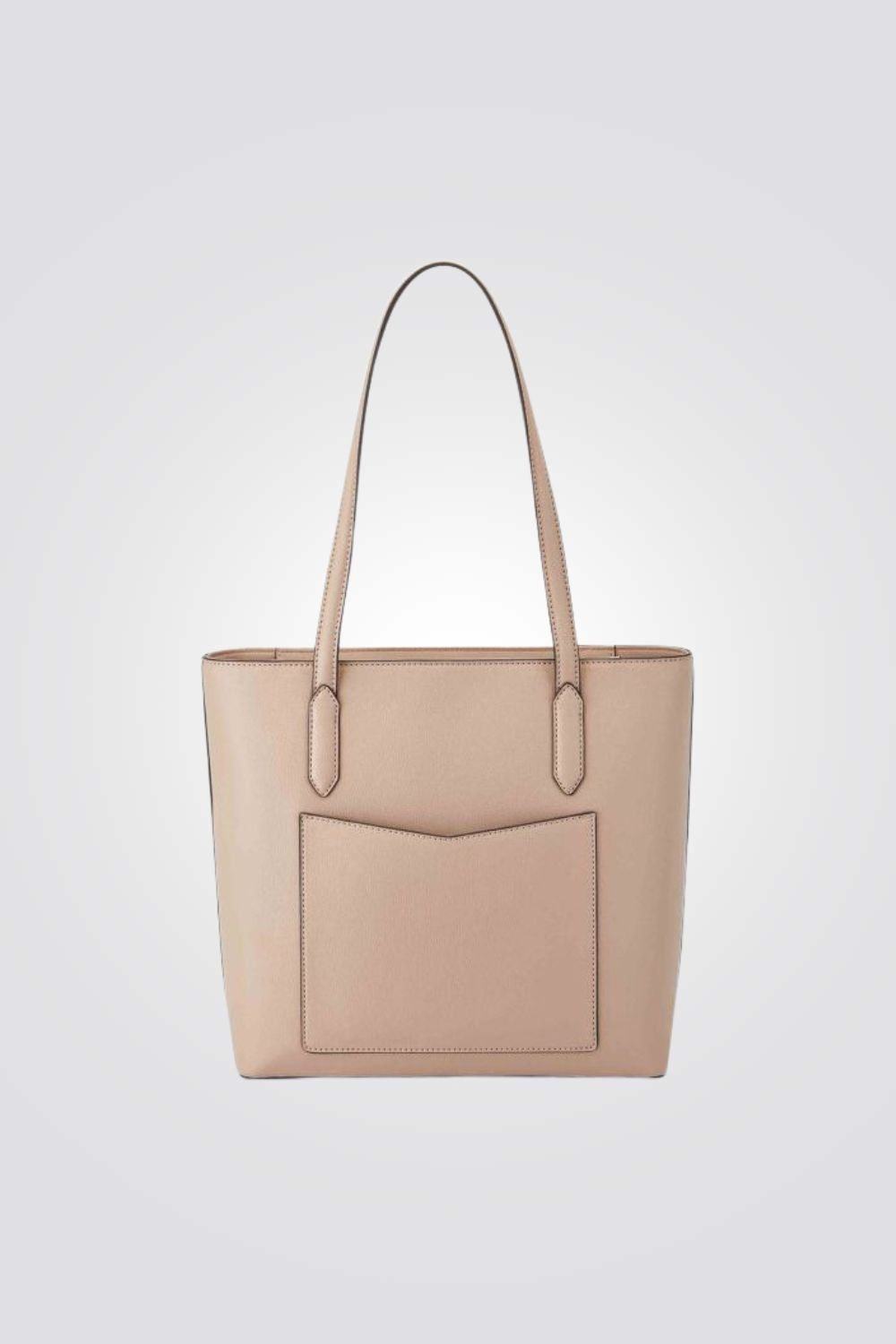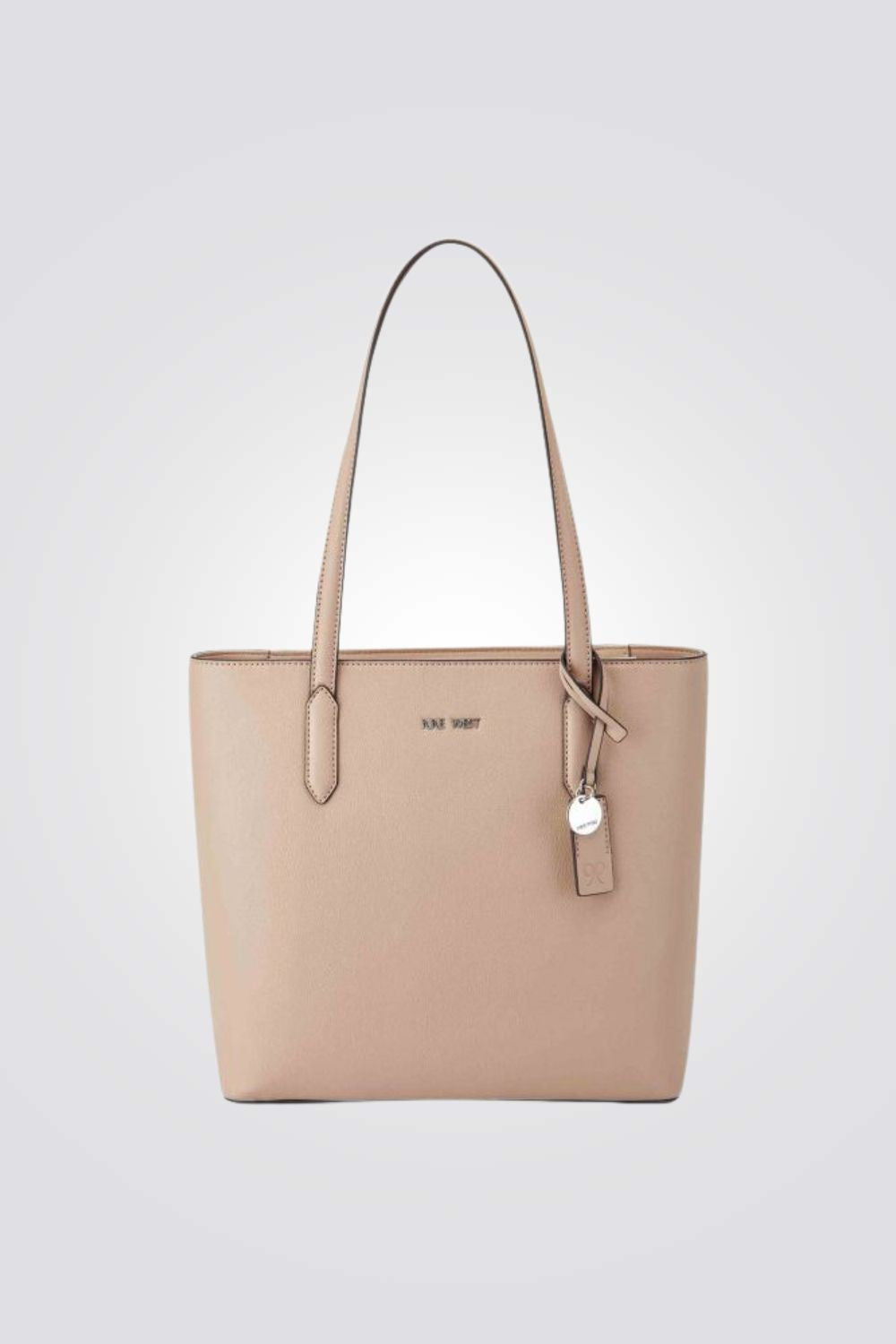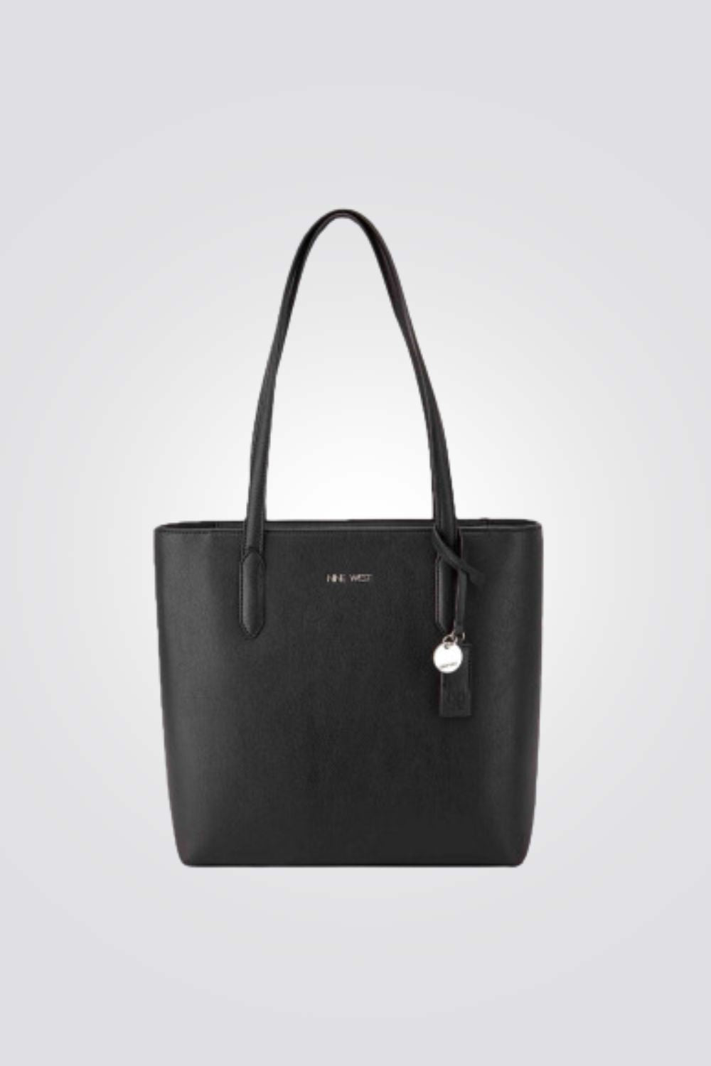 תיק יד לנשים מבית המותג NINE WEST, בעיצוב קלאסי ונקי, בשילוב מטבע עדין עם לוגו המותג . בעל רצועות נשיאה קצרות לנשיאה נוחה על הכתף. מושלם למגוון לוקים בכל סגנון שתבחרי. בעל צורה וגודל נוחים לאחסון.