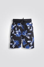 חולצה עם שרוולים קצרים וצווארון גבוה ומכנסיים קצרים עם שרוכי קשירה.