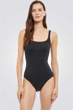 בגד ים שלם מבית המותג GOTTEX בגזרת מחטבת עם הדפס זברה מבד טקסטורה עם מחשוף מרובע, גב פתוח, כתפיות מתכווננות וקאפים מובנים.