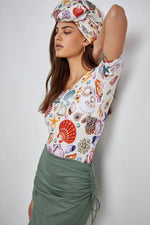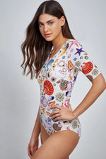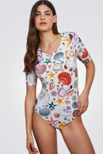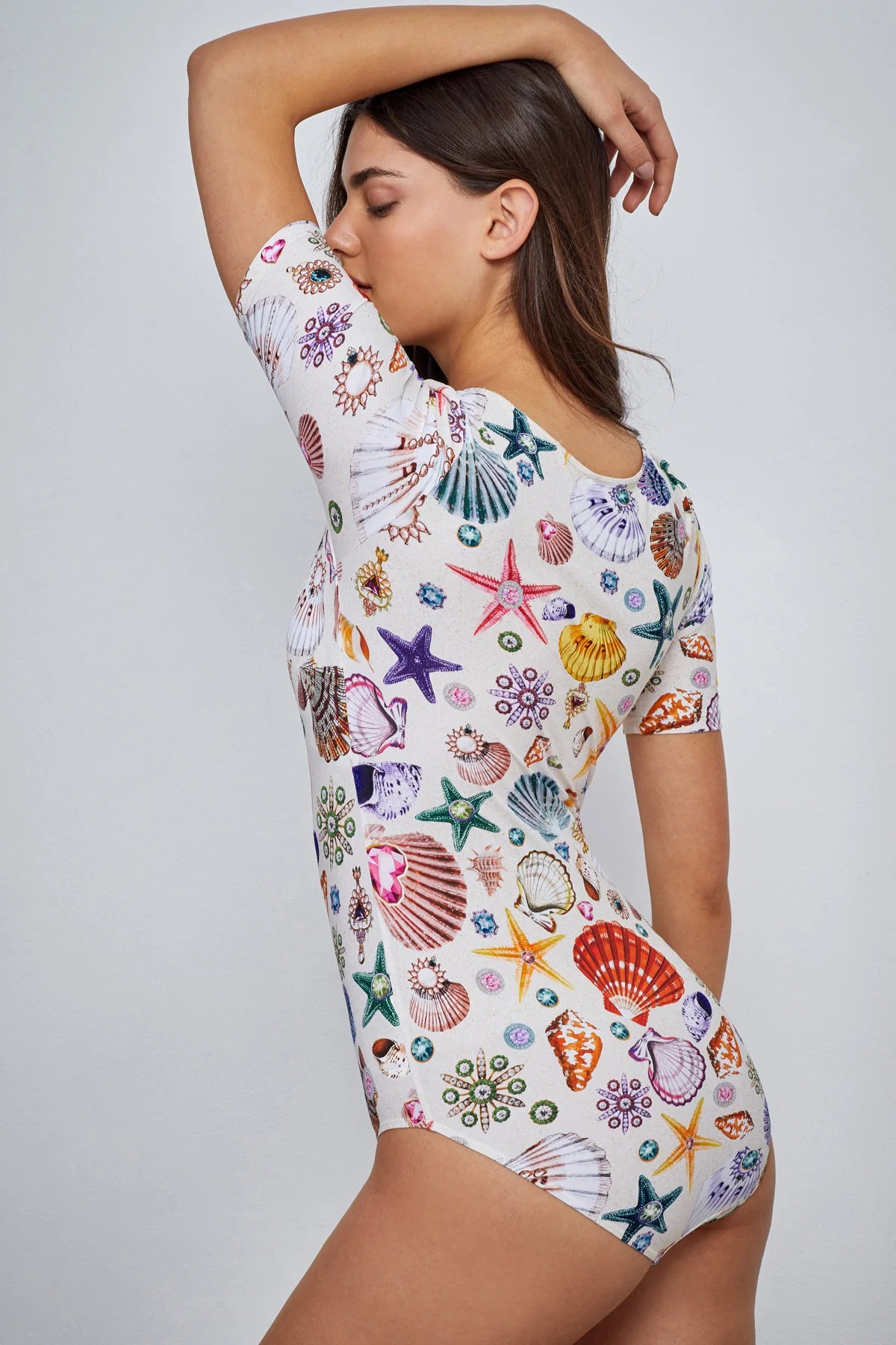 בגד ים שלם בצבע לבן עם צדפים לנשים
