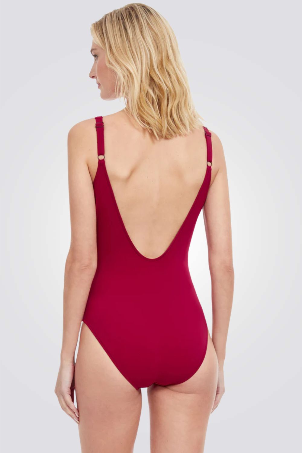 בגד ים שלם לנשים מבית המותג GOTTEX בעל מחשוף מרובע וקשירה במותן, כתפיות מתכווננות להתאמה אישית ונוחות מקסימלית, בטנה מחטבת, קאפים מובנים וגב פתוח.