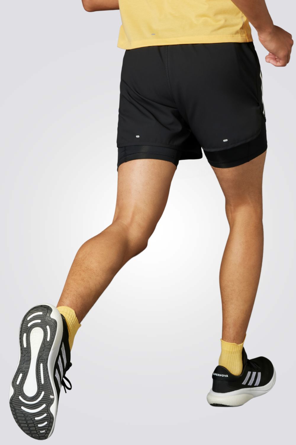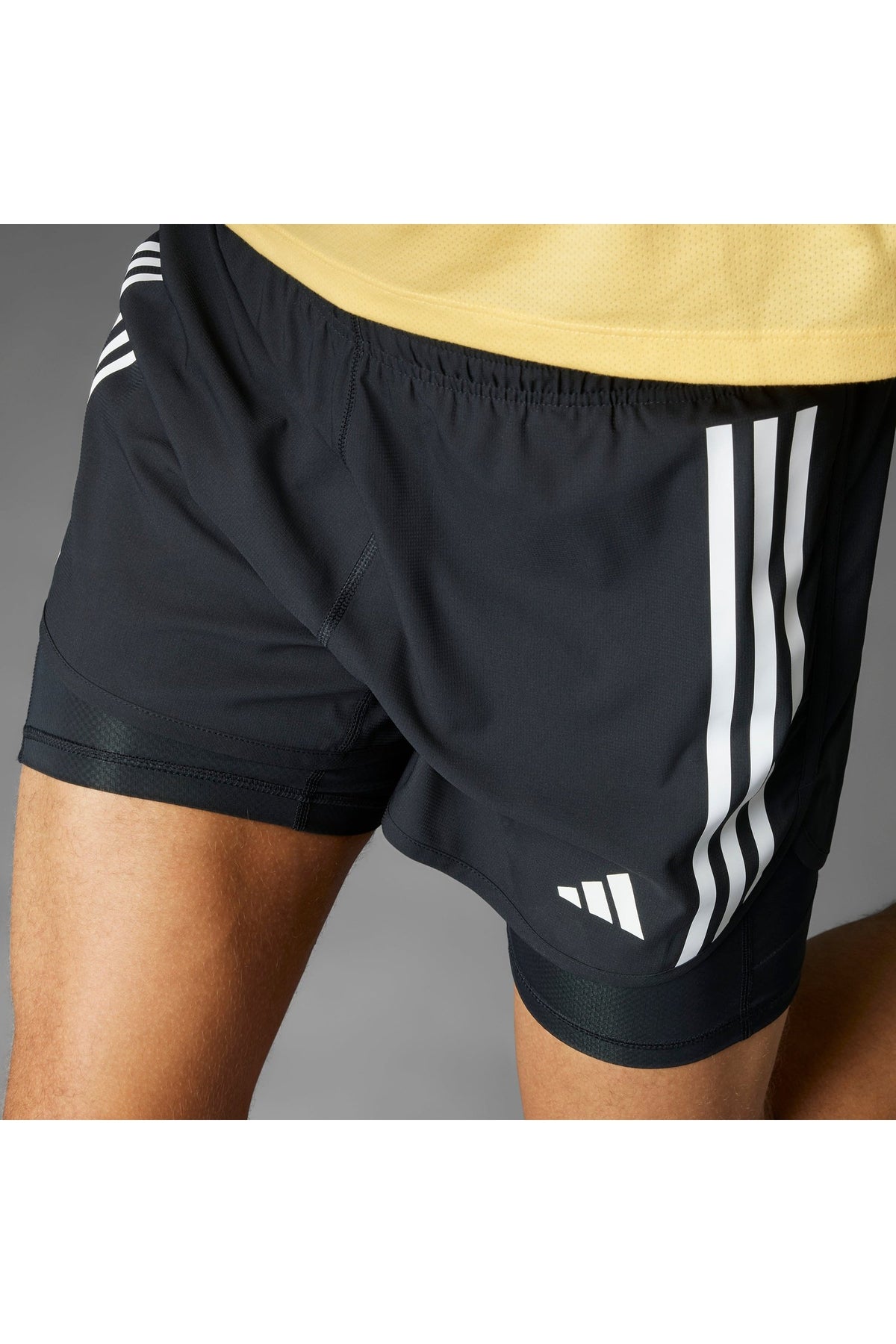 מכנסיים קצרים לגברים OWN THE RUN 3-STRIPES 2-IN-1 בצבע שחור
