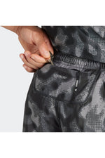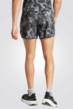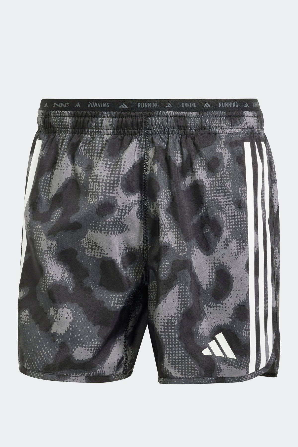מכנסיים קצרים לגברים OWN THE RUN 3-STRIPES ALLOVER בצבע אפור ושחור