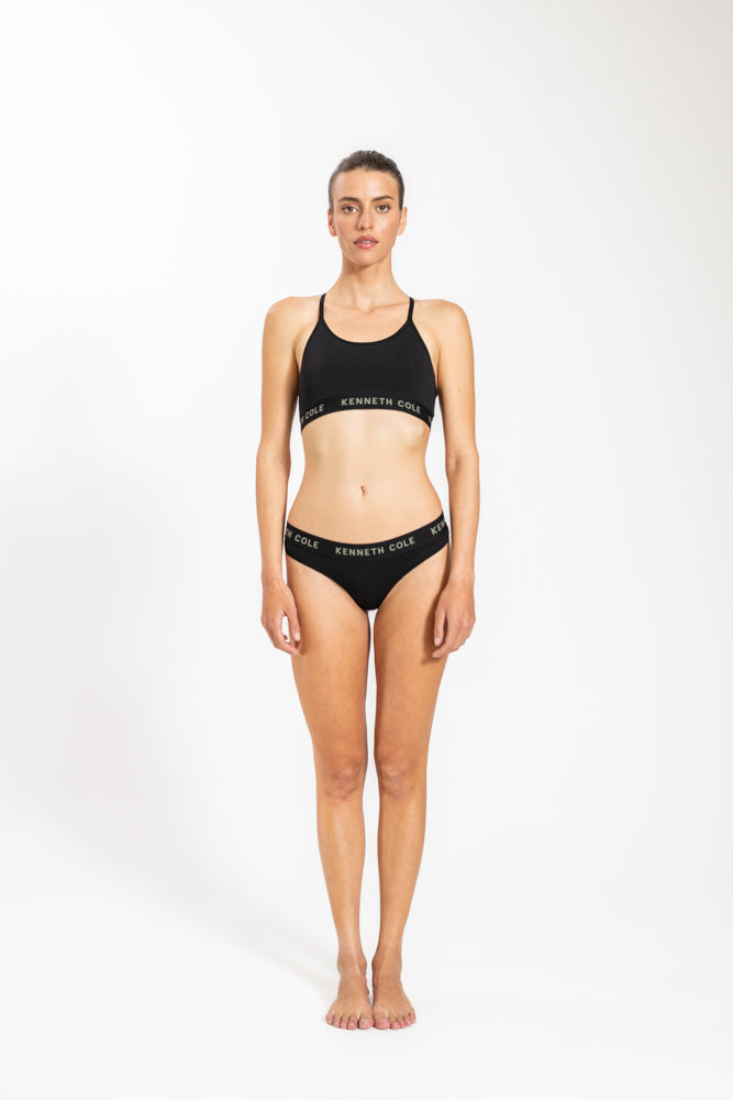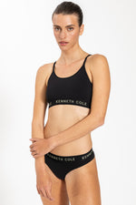 גוזיית ספגטי לוגו עם גומי צר בצבע שחור