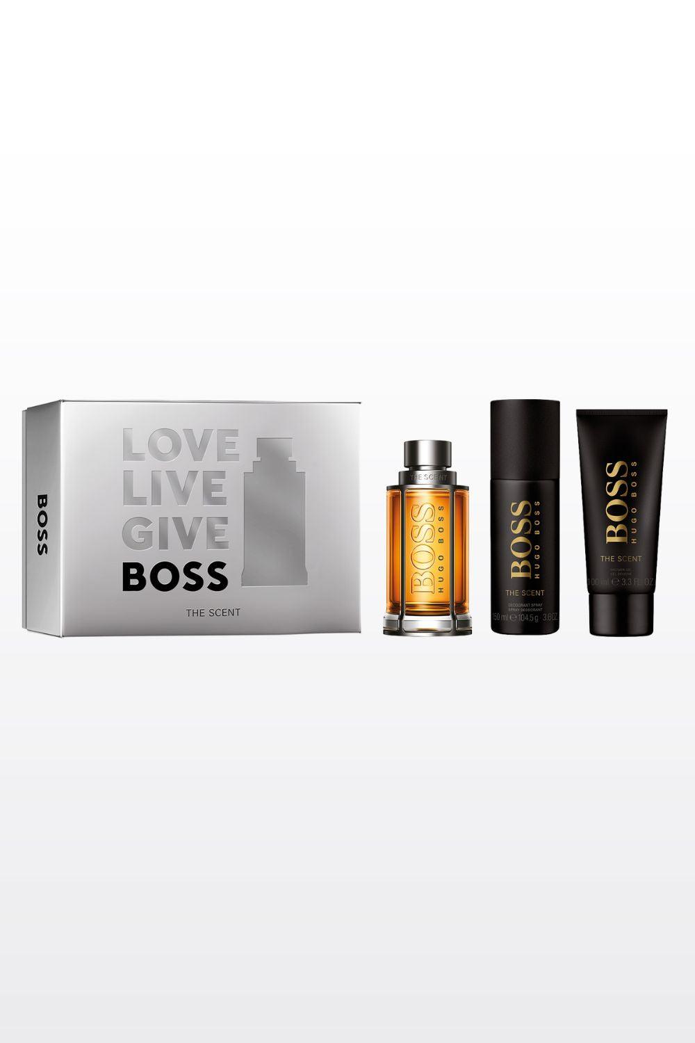 מארז בישום לגבר 100 מ"ל + ג'ל רחצה 100 מ"ל + דאודורנט ספריי 150 מ"ל Boss The Scent E.D.T