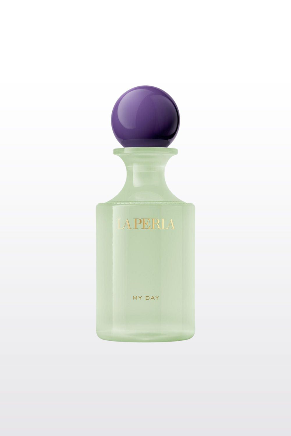 בראש הבקבוק הירוק בהיר של My Day נמצא פקק סגול אשר מייצג את פרח האיריס המקסים, אשר שורשיו יקרי הערך עומדים בלב הבושם הזה.