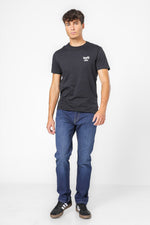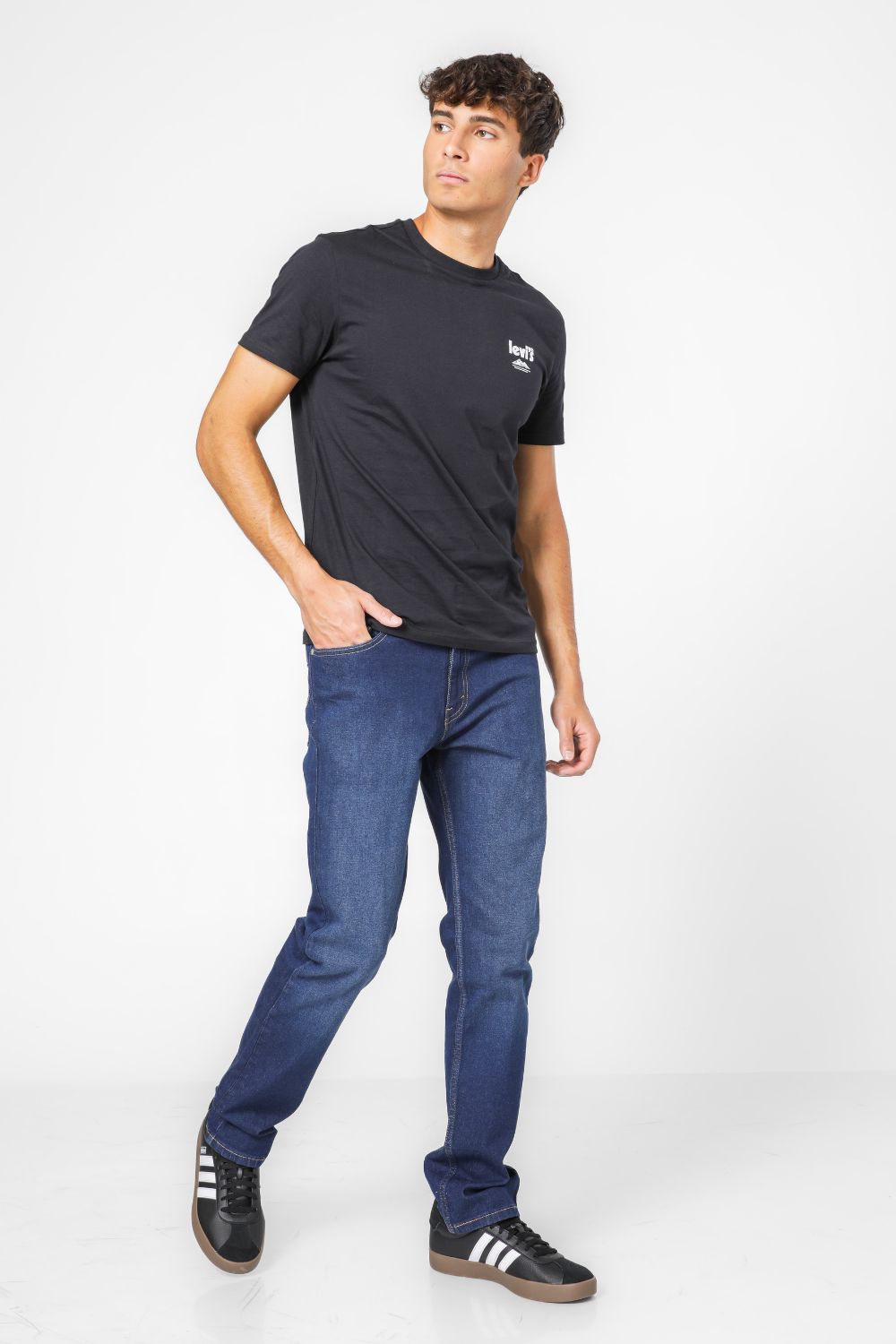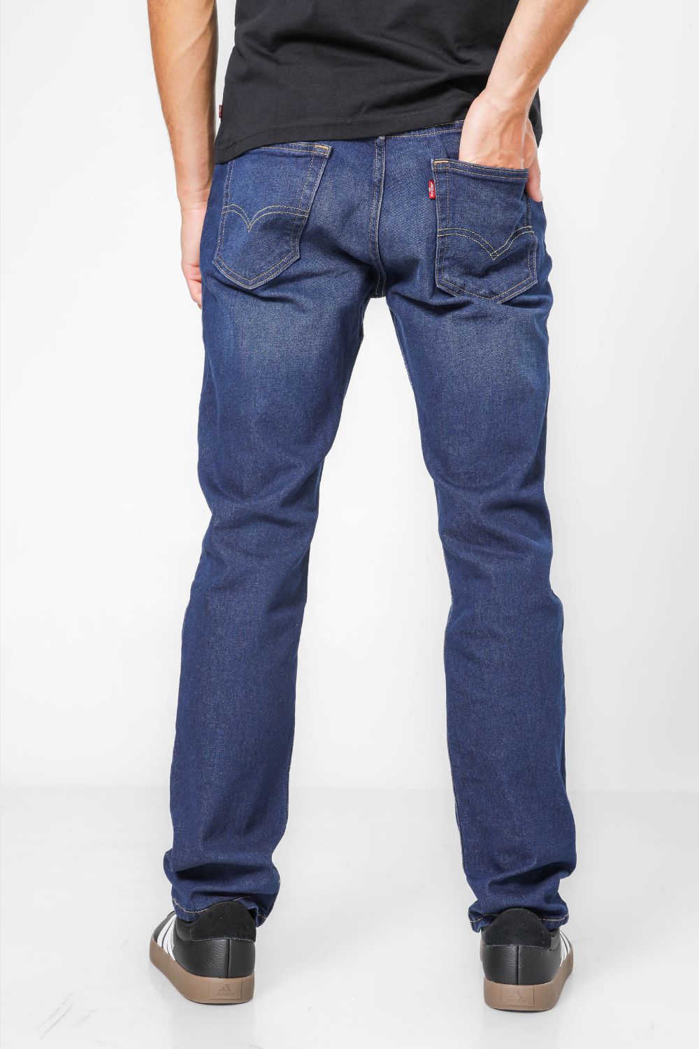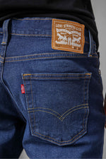 ג'ינס מבית המותג Levi's לגברים בצבע שחור, בגזרה צמודה, בגובה המותן, בעל רוכסן וכפתור לפתיחה וסגירה וכיסים קדמיים ואחוריים.