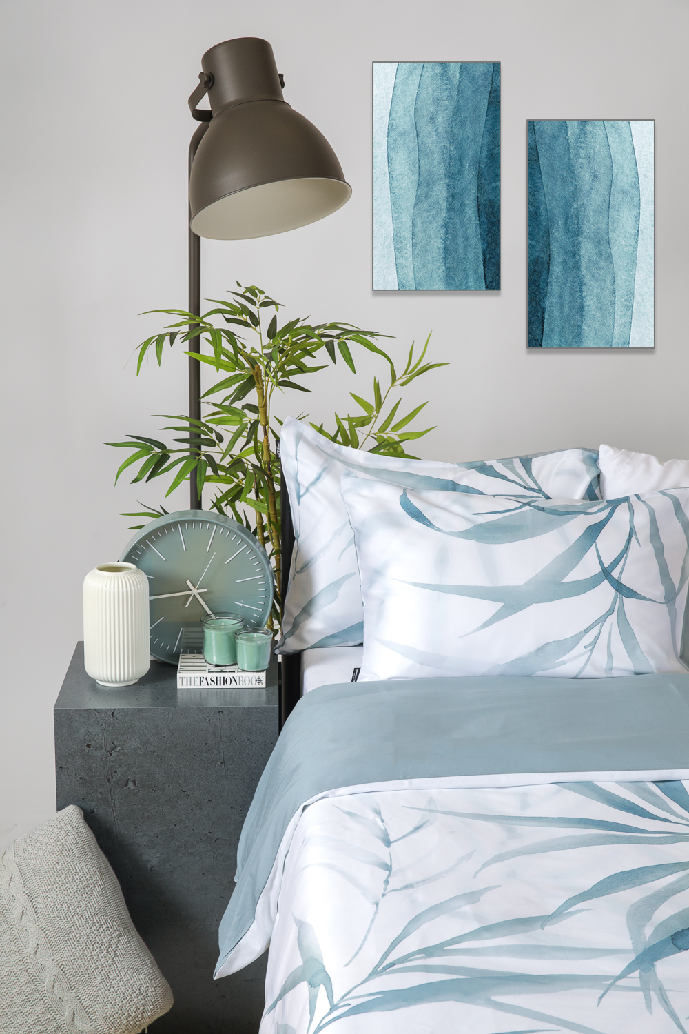 סט מצעים זוגי 160/200 ס"מ כותנה סאטן דגם Blue Leaves