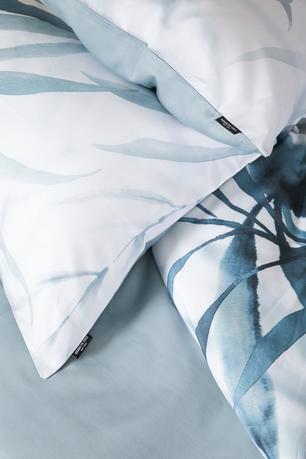 סט מצעים זוגי 160/200 ס"מ כותנה סאטן דגם Blue Leaves מבית המותג KENNETH COLE.