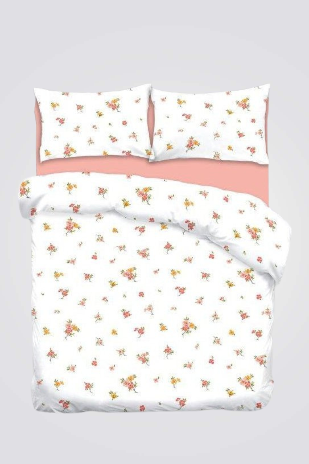 סט מצעים מיטה וחצי 120/200 ס"מ כותנה דגם נטלי גוון ורוד לבן