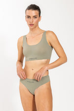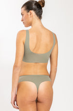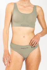 תחתון חוטיני לייזר קאט חלק בצבע ירוק זית