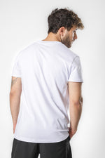 זוג חולצות טי שרט מבית המותג NAUTICA בצבע לבן לגברים, בעלות שרוול קצר, צווארון V ועם סמל המותג בשחור.