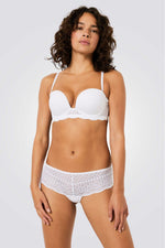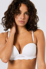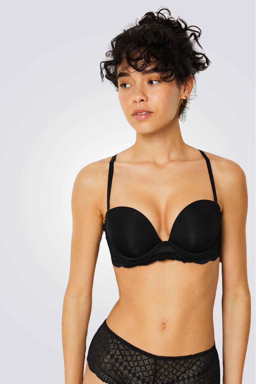 חזיית פוש אפ מבית המותג הצרפתי ETAM עשויה מבד עדין בעלת עיטורי תחרה בחלקה התחתון של החזייה ורצועות נשלפות המתאימות לגזרת סטרפלס.