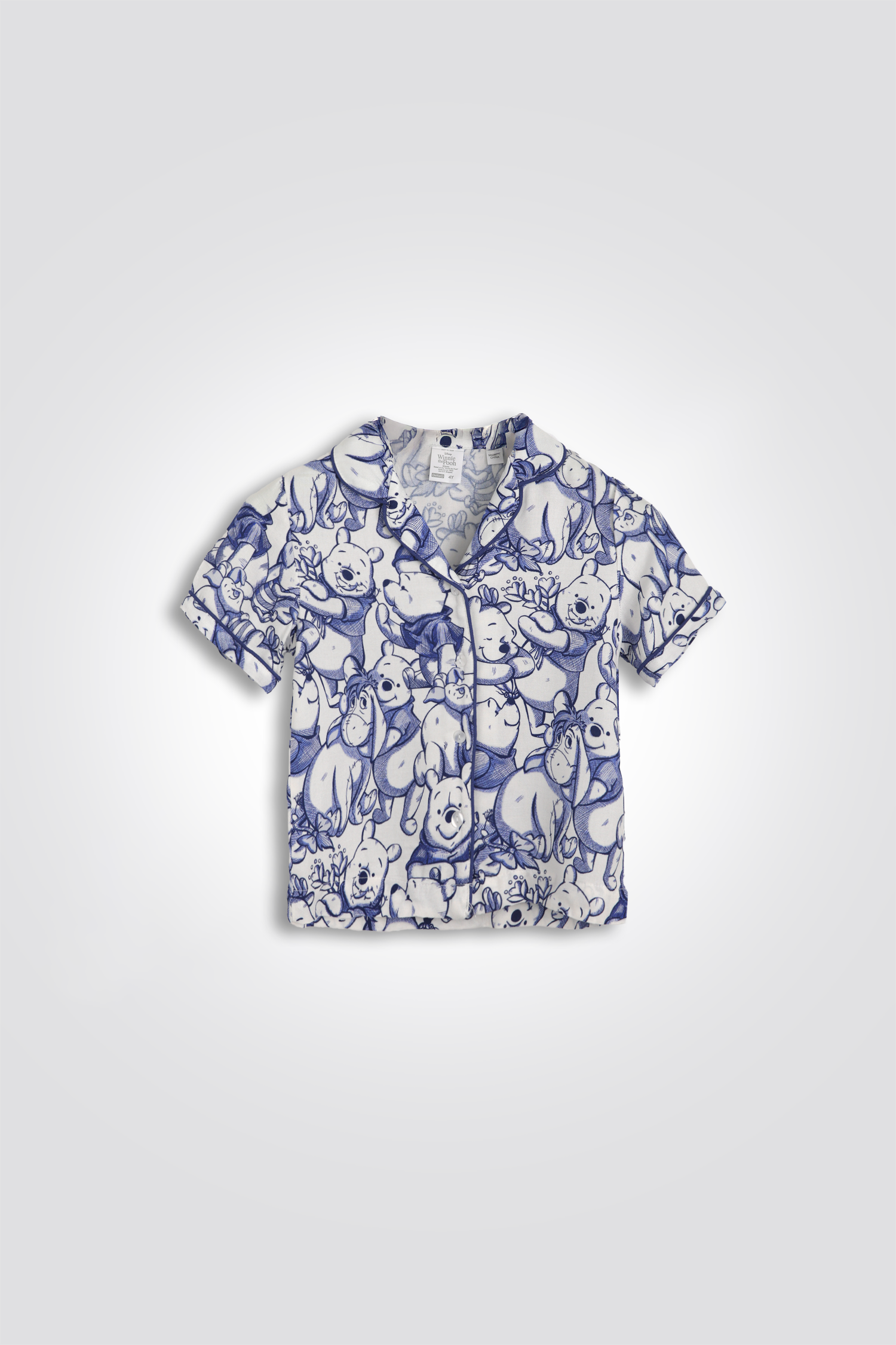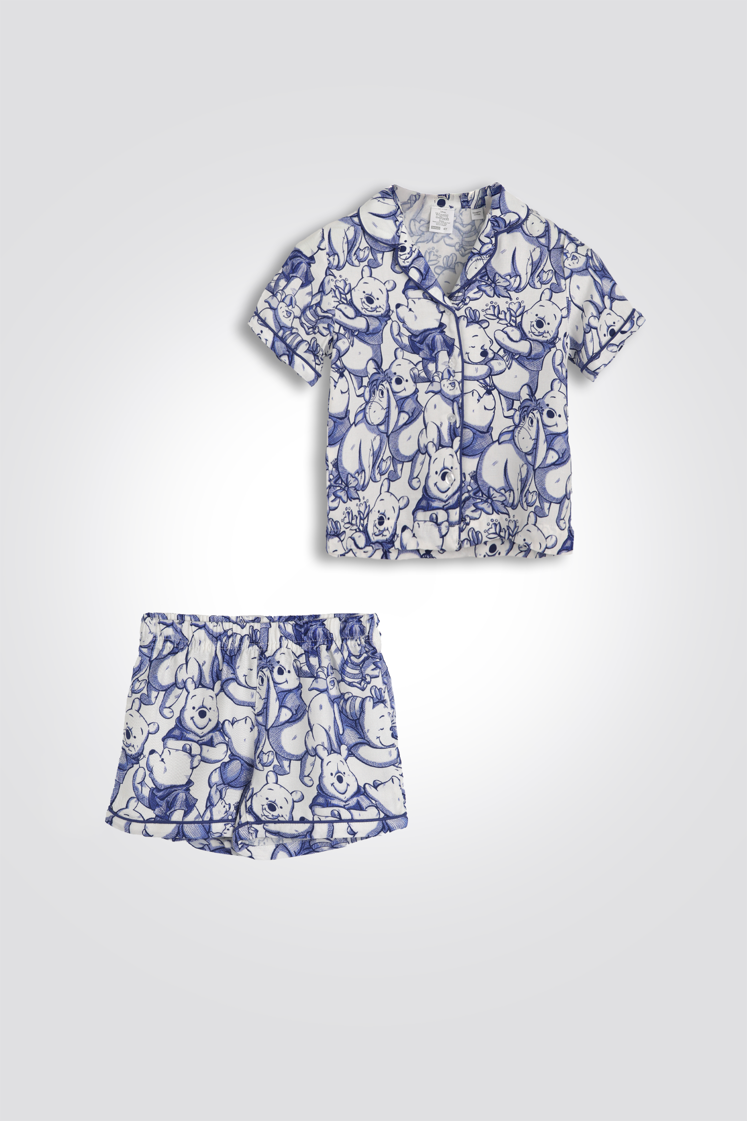 פיג’מה מכופתרת לילדות מבית המותג DELTA העשיה משילוב בד ויסקוזה נעים עם הדפסים מתוקים של פו הדוב וחברים. חולצה מכופתרת עם צווארון משולשים ושרוולים קצרים, ומכנסיים קצרים תואמים עם גומי במותניים וסרטי קשירה. חפשו את הדגם התואם לאמא!