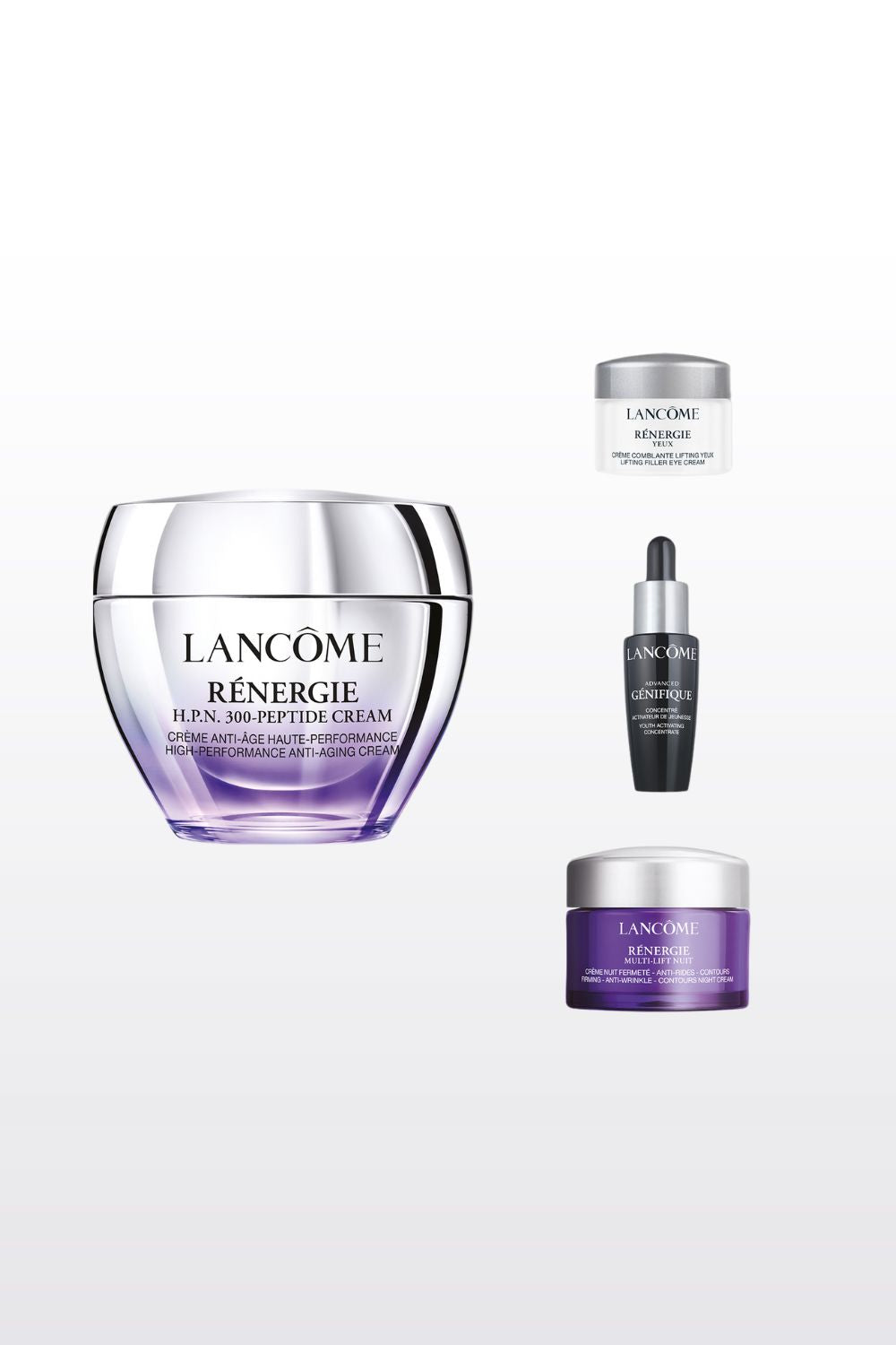 בנוסף לקרם בגודל מלא (50 מ"ל), מכיל המארז גם: רנרג'י קרם לילה (15 מ"ל), סרום ג'ניפיק לפנים (10 מ"ל) וקרם עיניים רנרג'י (5 מ"ל).