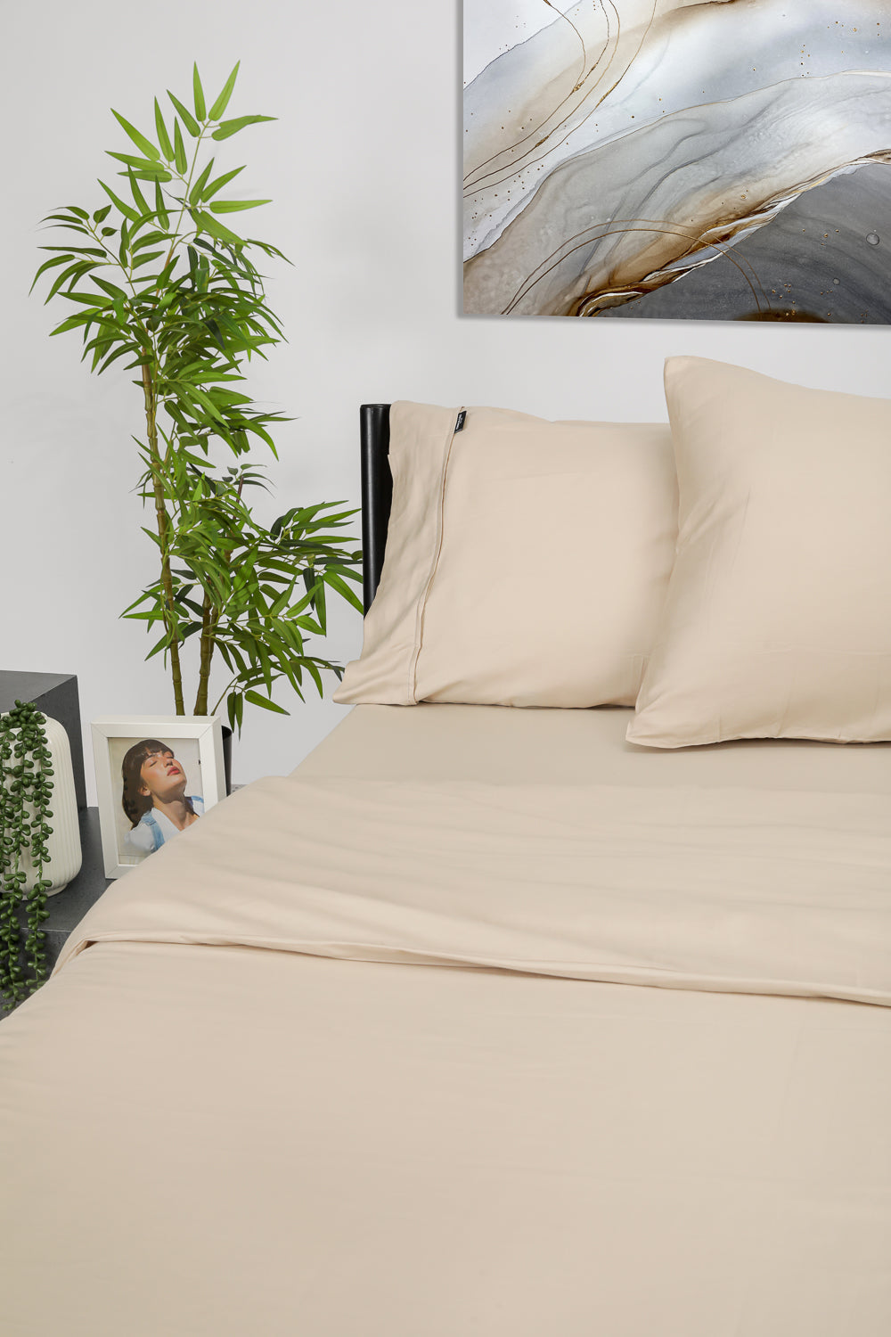 ציפה לשמיכת יחיד 150/200 100% כותנה באריגת סאטן בצבע בז'
