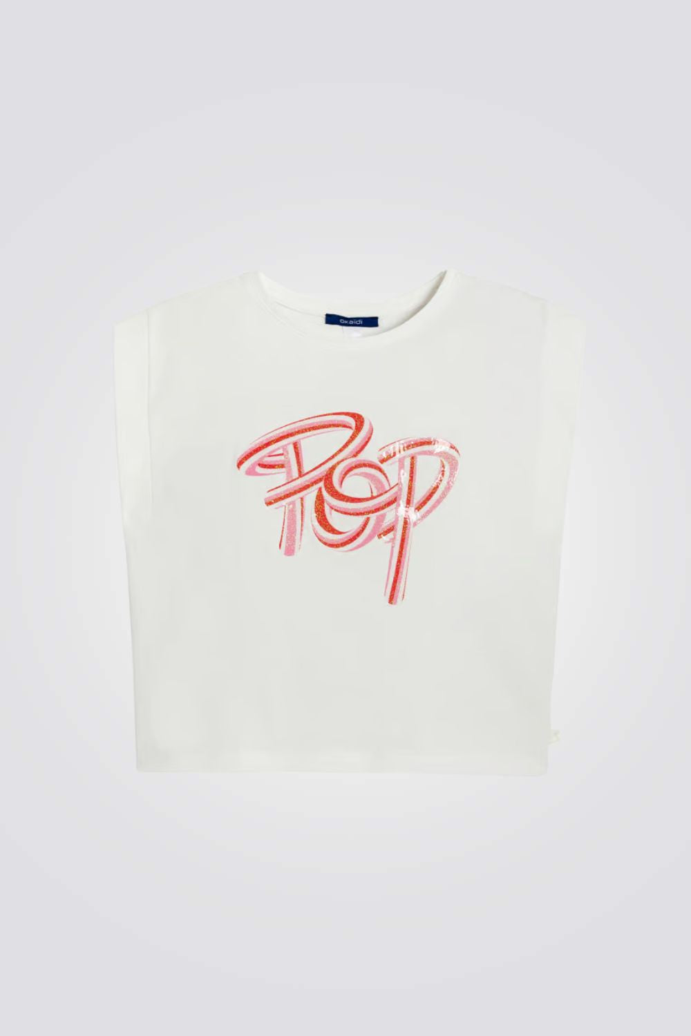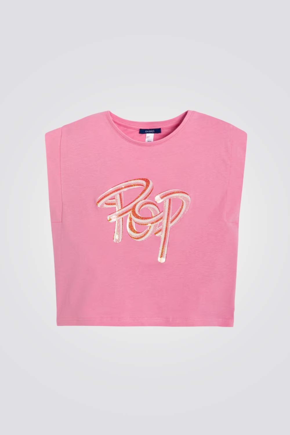 טישירט לילדות מבית המותג OKAIDI, ללא שרוולים , עשויה מבד ג'רסי רך עם הדפס .