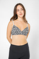 חזיית מיקרופייבר עם ריפוד קל ללא ברזלים בהדפס מנומר לבן