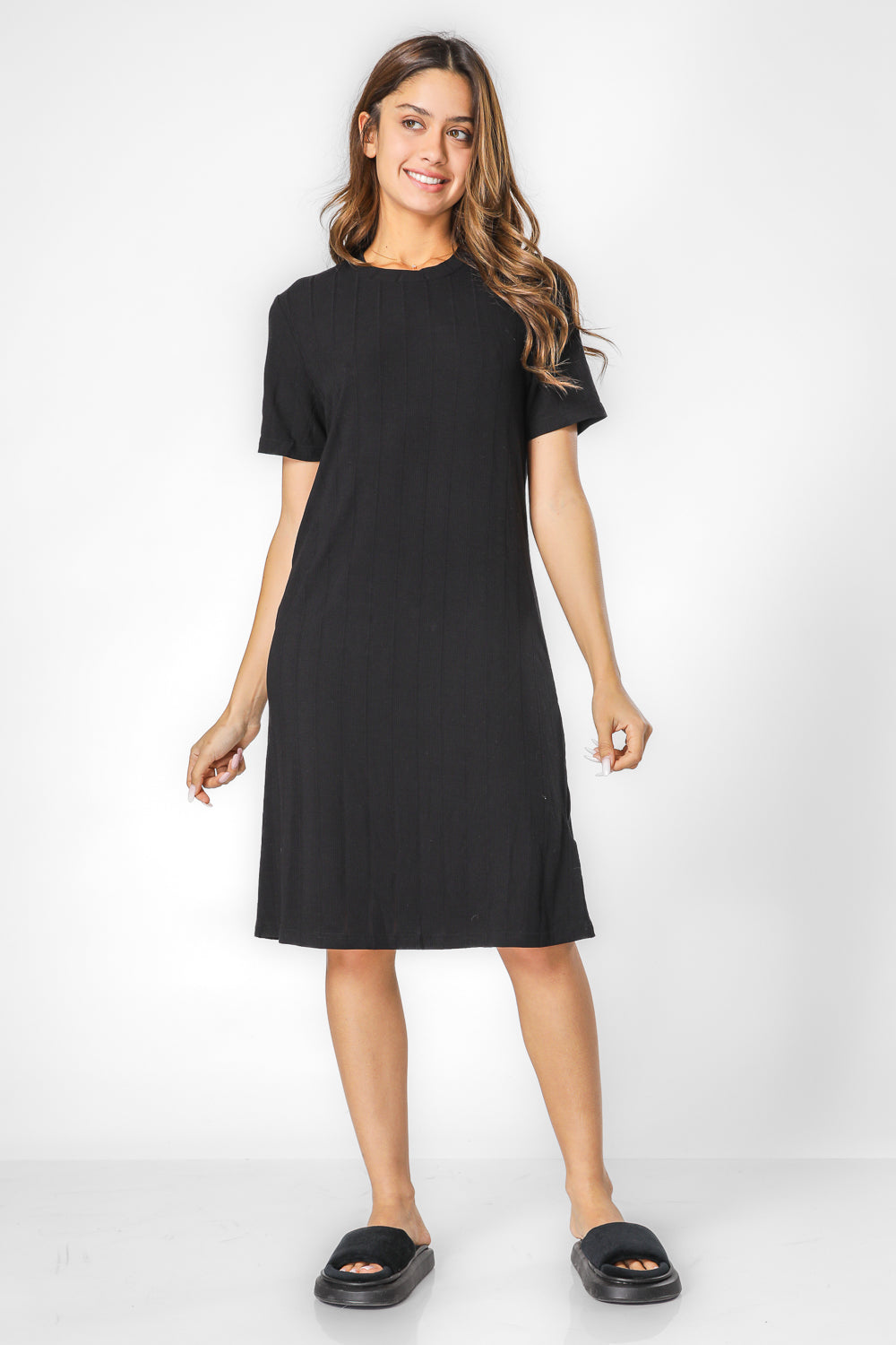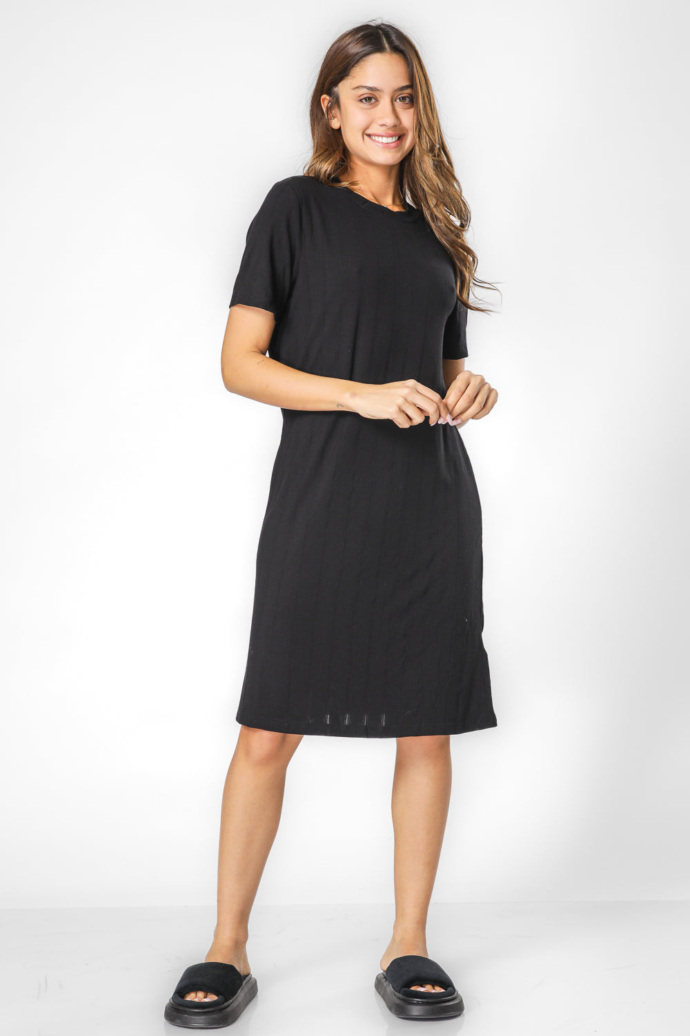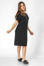 כותונת לילה מבית המותג DELTA בגזרה משוחררת מבד בטקסטורת ריב עם צווארון עגול ושרוולים קצרים.