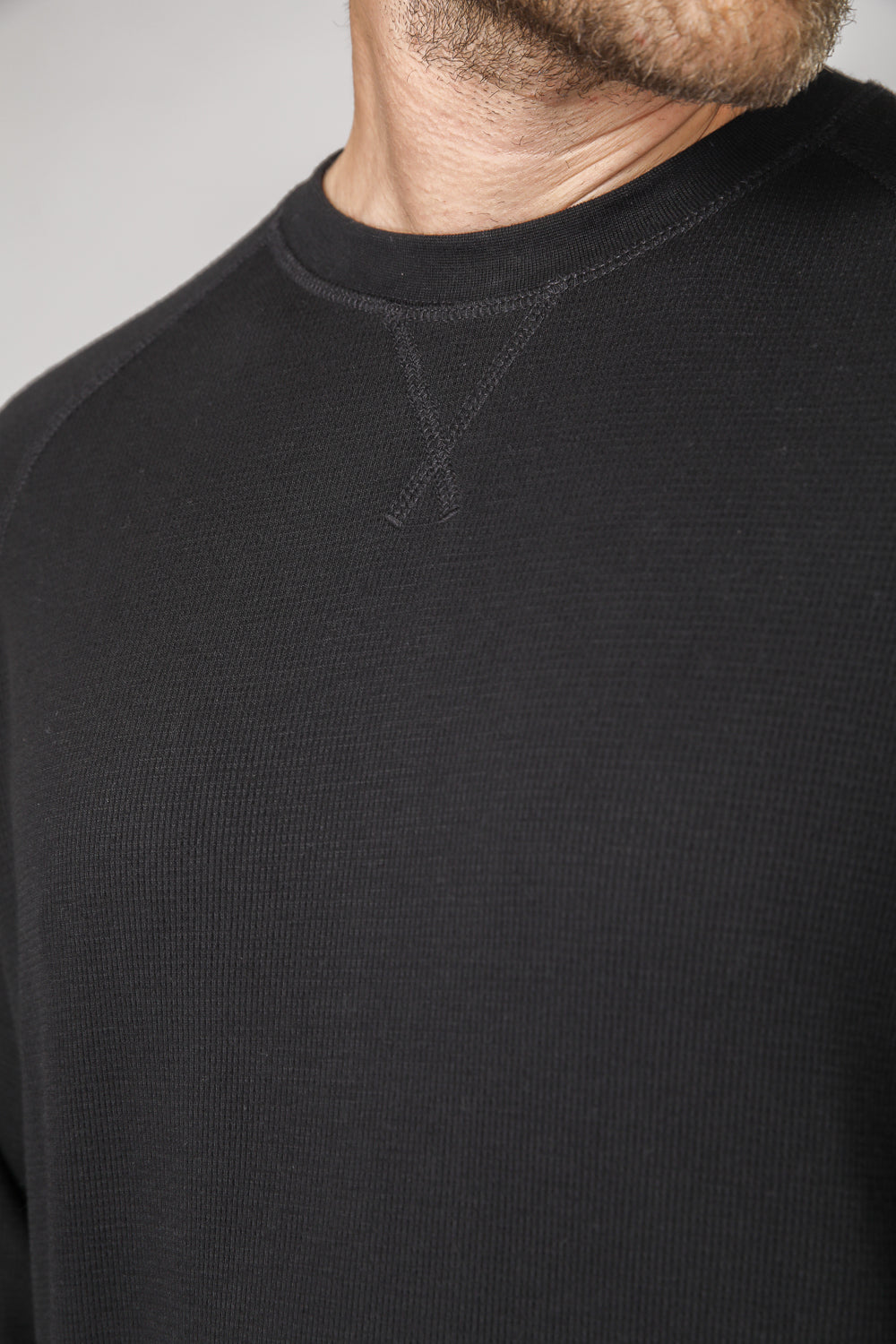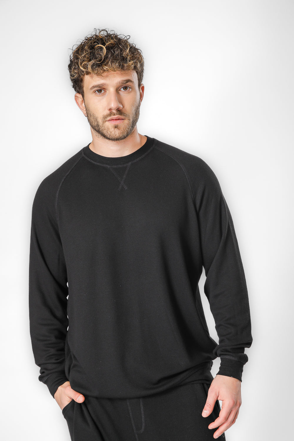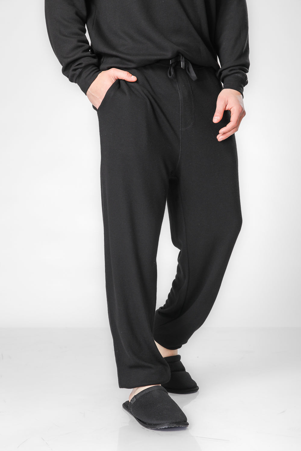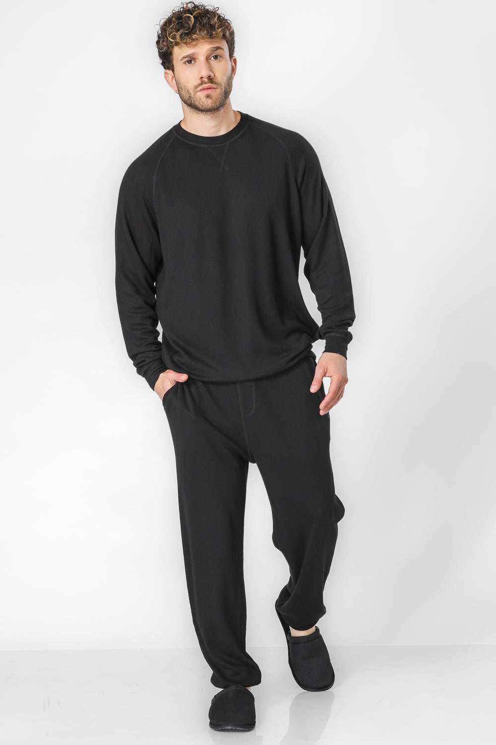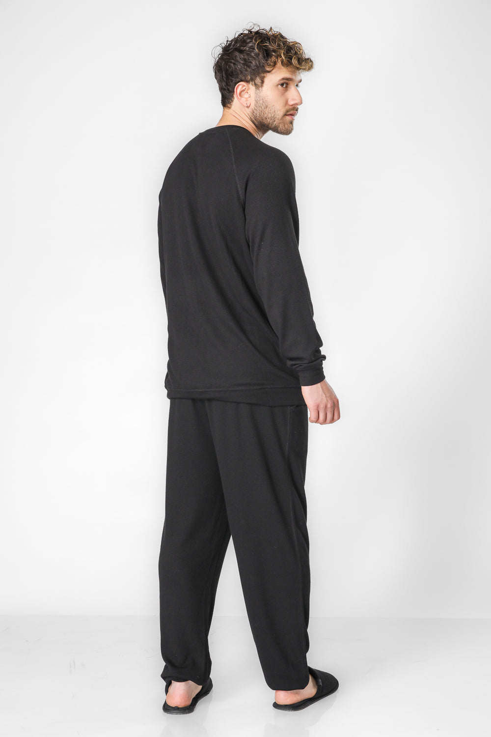 חליפת פנאי לגבר מבית המותג DELTA העשויה מבד נעים ורך בטקסטורת וופל. חולצה עם צווארון עגול, שרוולים ארוכים וסיומת מנג’ט ומכנסיים ארוכים עם גומי במותניים, כיסים וסיומת מנג’ט.