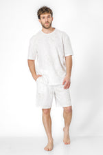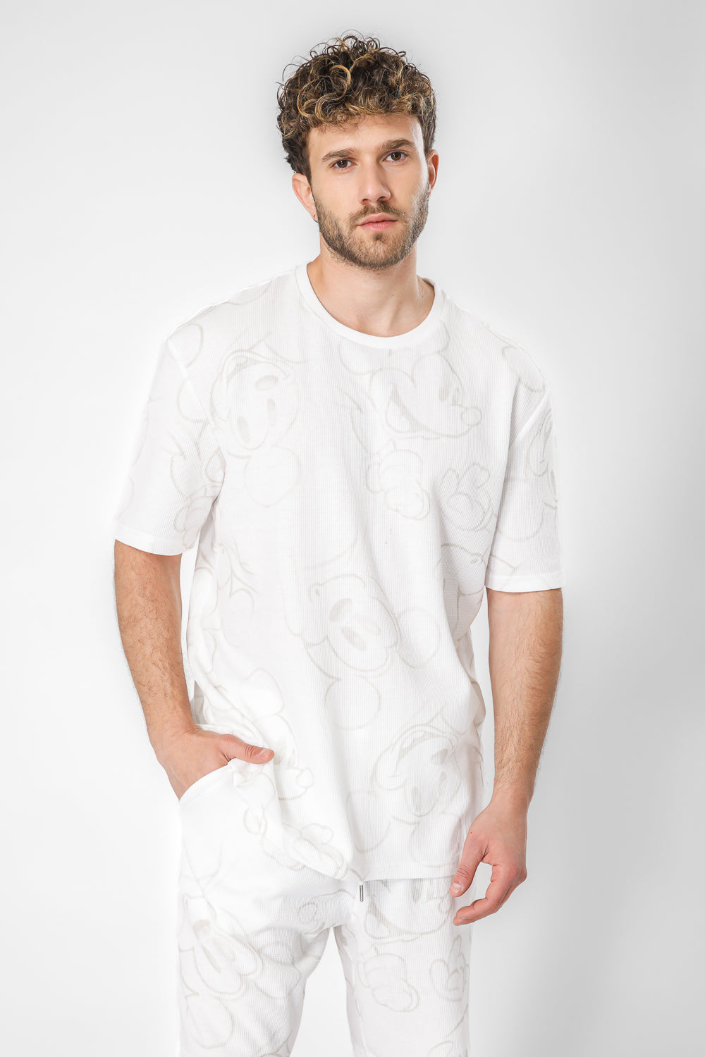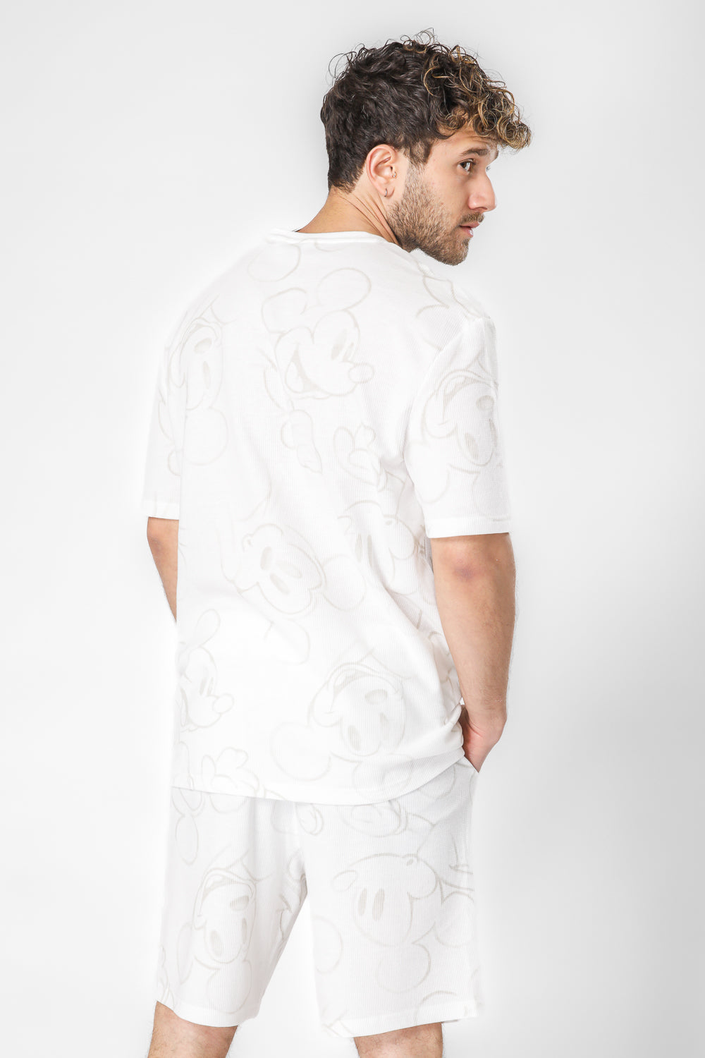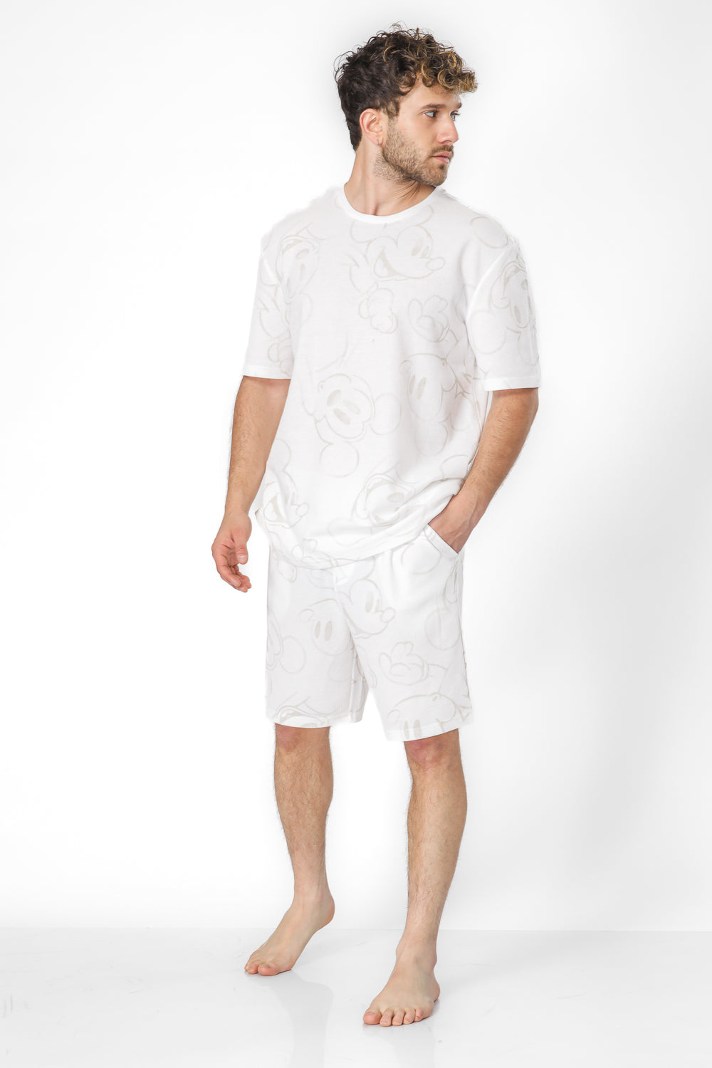 סט פיג’מה קצרה לגברים מבית המותג DELTA העשויה בד קליל ונעים בטקסטורת וואפל עם הדפס של מיקי מאוס. חולצה עם צווארון עגול ושרוולים קצרים, ומכנסיים קצרים עם גומי במותניים, שרוכי קשירה וכיסים בצדדים לנוחות מירבית.