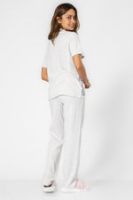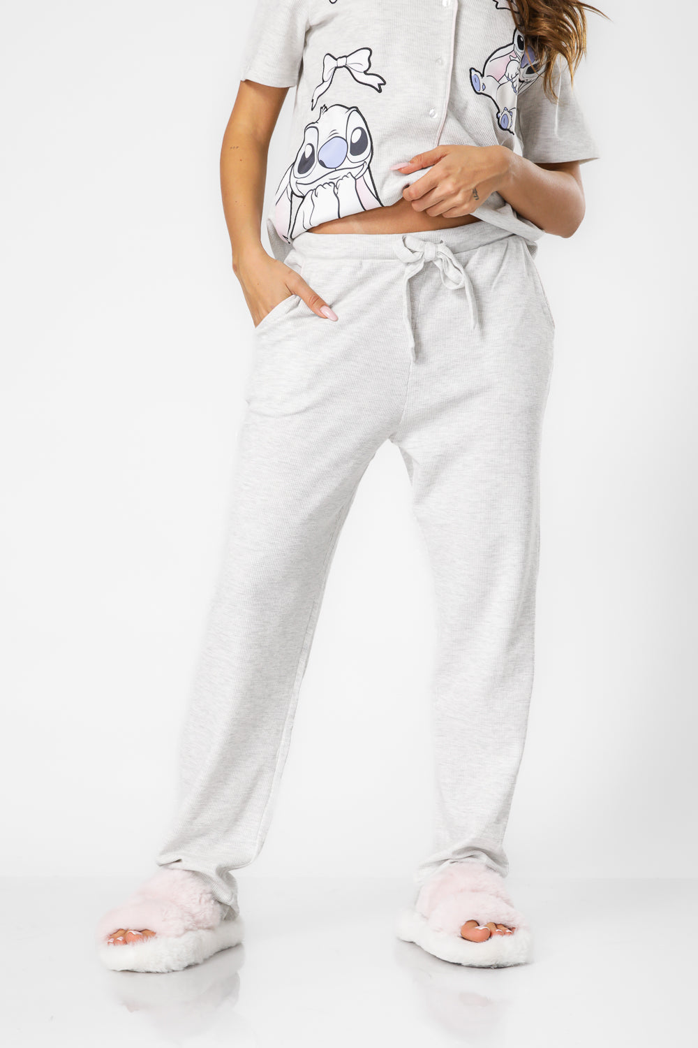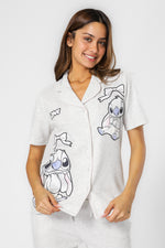 סט פיג'מת מעבר מבית המותג DELTA מבד בטקסטורת וופל נעימה עם הדפסים של סטיץ’. חולצה מכופתרת עם צווארון משולשים ושרוולים קצרים, ומכנסיים ארוכים בגזרה ישרה עם גומי במותניים, שרוכי קשירה וכיסים.