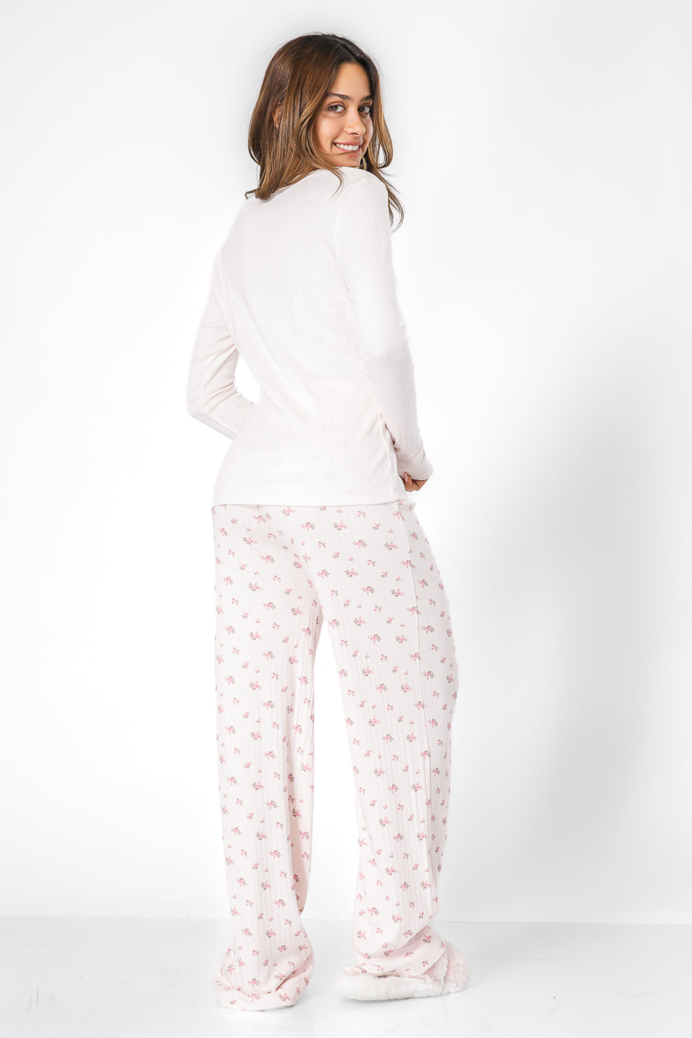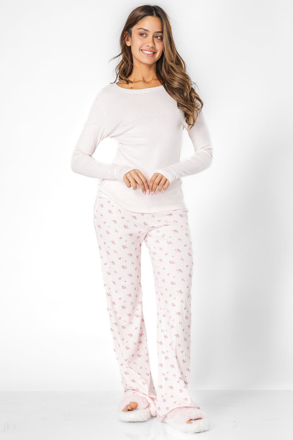 סט פיג'מה פרחונית מבית המותג DELTA העשויה מבד דק ונעים.
