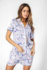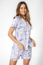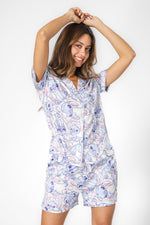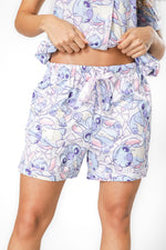 סט פיג'מת קיץ מבית המותג DELTA העשויה מבד סאטן רך ומלטף עם הדפס של סטיץ’. חולצה מכופתרת עם צווארון משולשים ושרוולים קצרים, ומכנסיים קצרים עם גומי במותניים, שרוכי קשירה וכיסים.