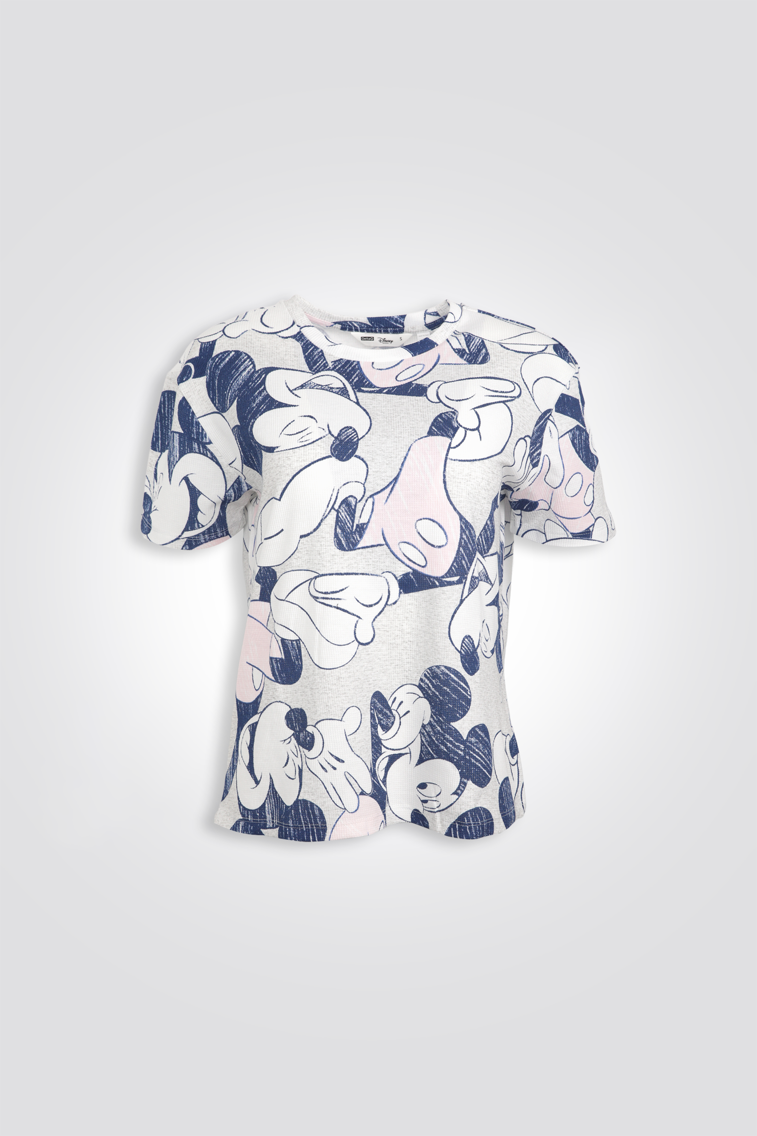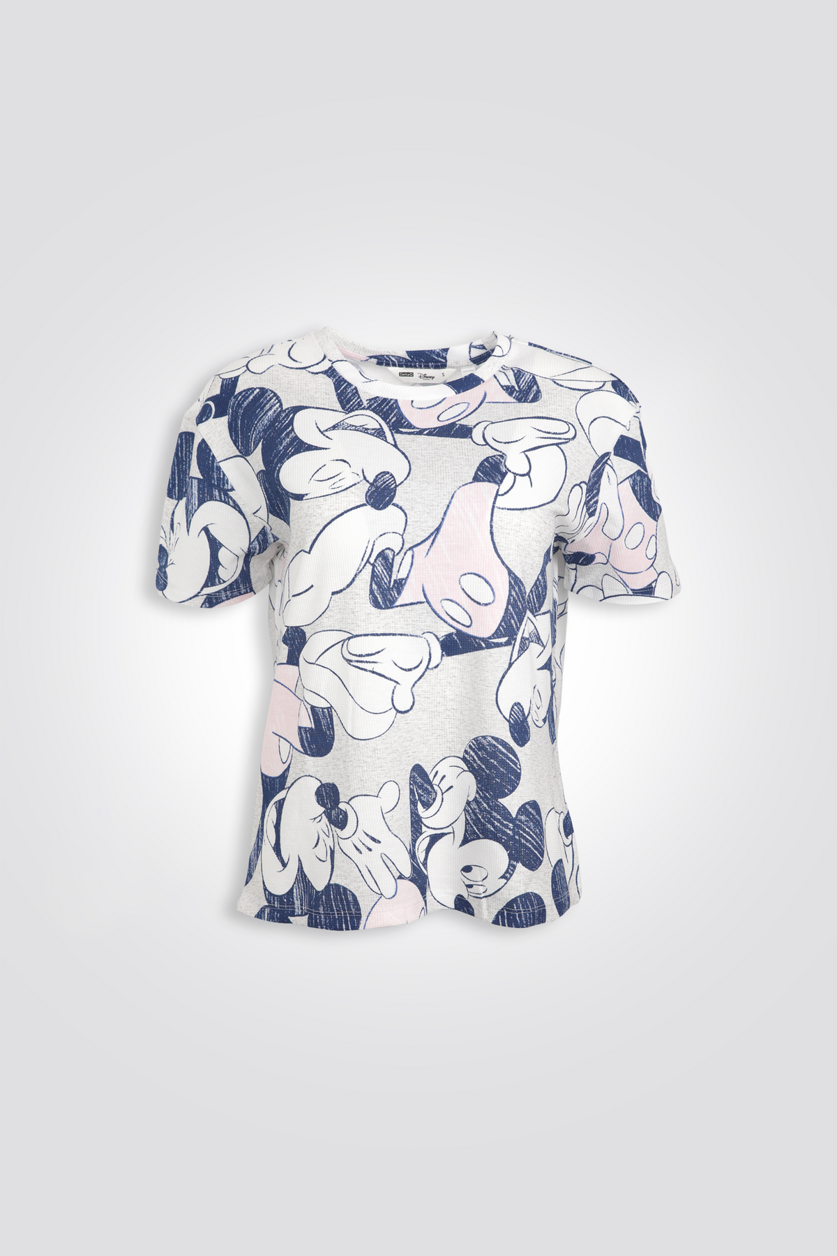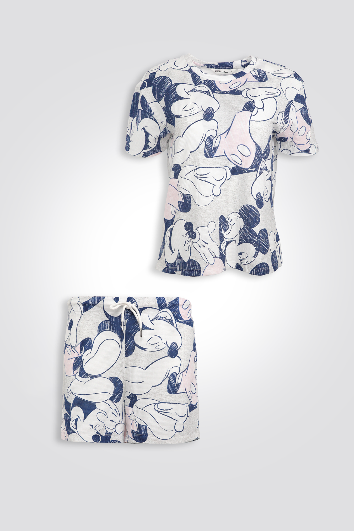 פיג'מת קיץ מבית המותג DELTA העשויה מבד רך ונוח בטקסטורת וופל נעימה עם הדפס מדליק של מיקי מאוס. חולצה עם צווארון עגול ושרוולים קצרים, ומכנסיים קצרים תואמים עם גומי במותניים ושרוכי קשירה.