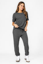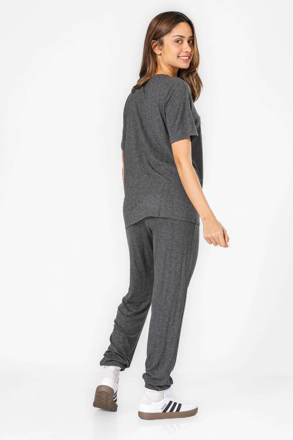 סט פיג'מת מעבר מבית המותג DELTA המעוצבת בטקסטורת ריב נעימה. חולצה בגזרה משוחררת עם מפתח צוואר עגול ושרוולים קצרים, ומכנסיים ארוכים עם גומי במותניים, מנג’ט ושרוכי קשירה.