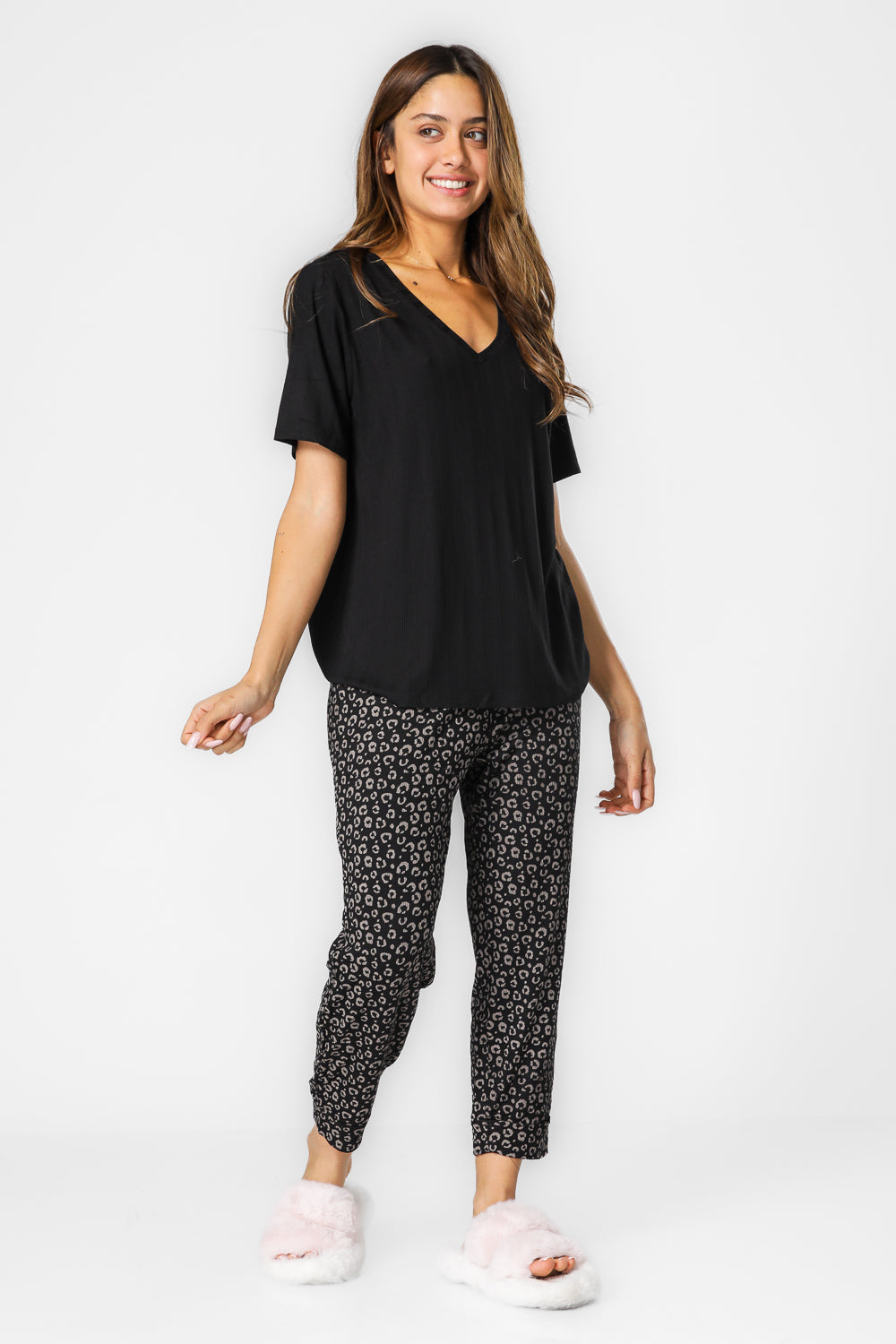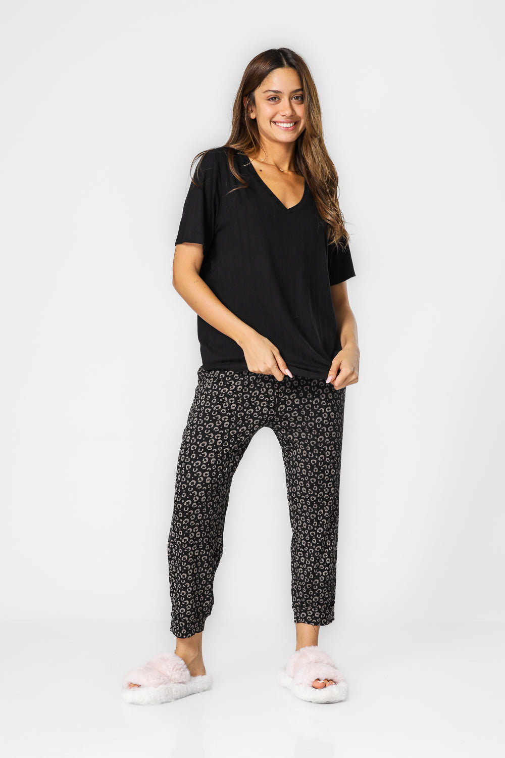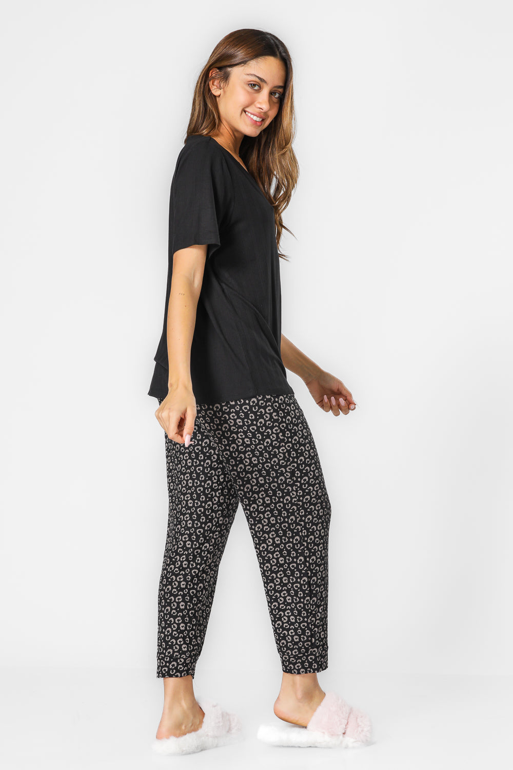 סט פיג’מה 7/8 LEOPARD בצבע שחור