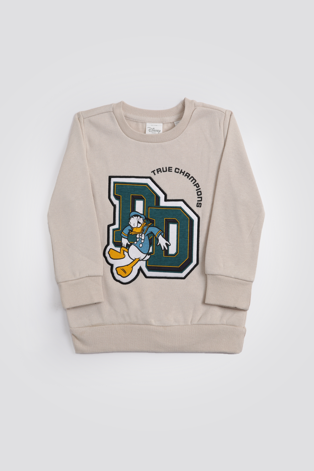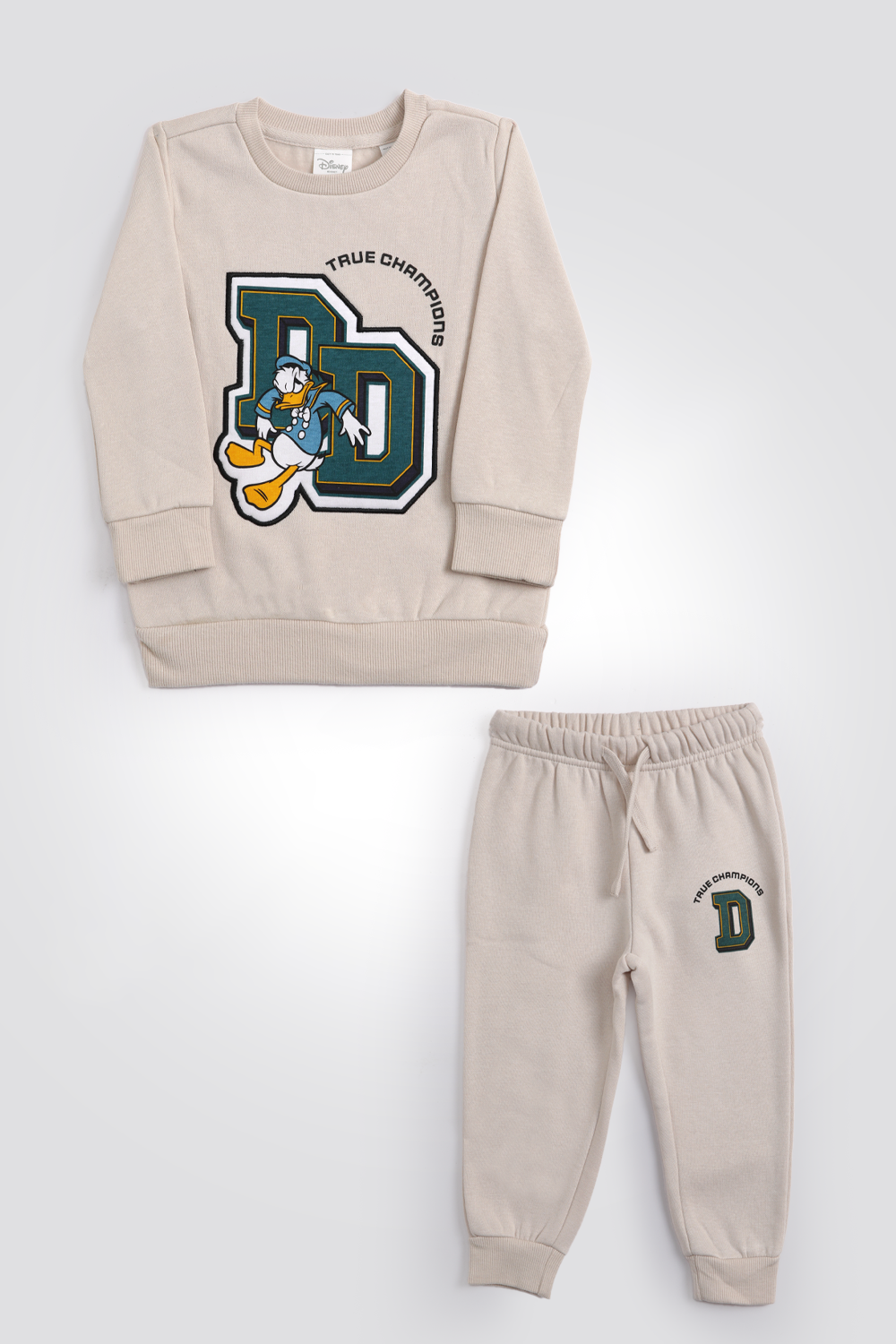 סט פיג'מה ארוכה לילדים מבית המותג DELTA העשוי מבד פוטר רך ומחמם עם הדפס מדליק של דונלד דאק. חולצה עם צווארון עגול ושרוולים ארוכים עם סיומת מנג’ט ומכנסיים ארוכים עם גומי במותניים וסיומת מנג’ט.