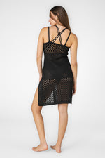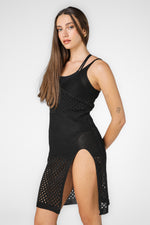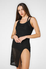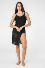 שמלת חוף גופייה עם שסע בצבע שחור