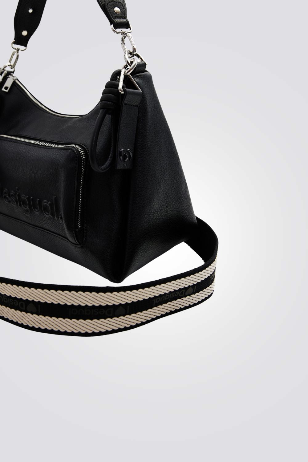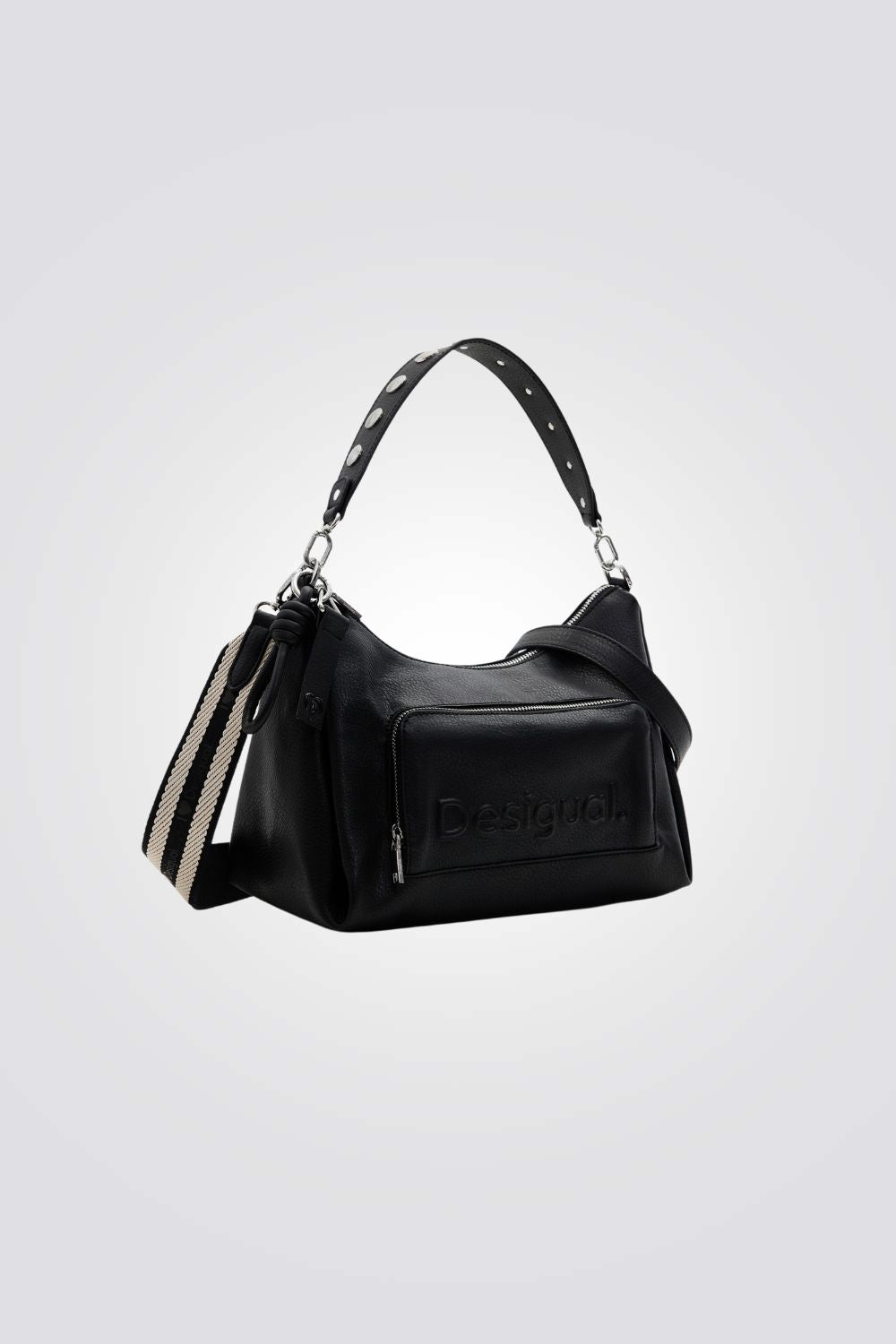 תיק צד לנשים מבית המותג DESIGUAL, בעיצוב קלאסי ומודרני עםתא ראשי עם סגירת רוכסן ושתי רצועות צד.
