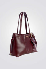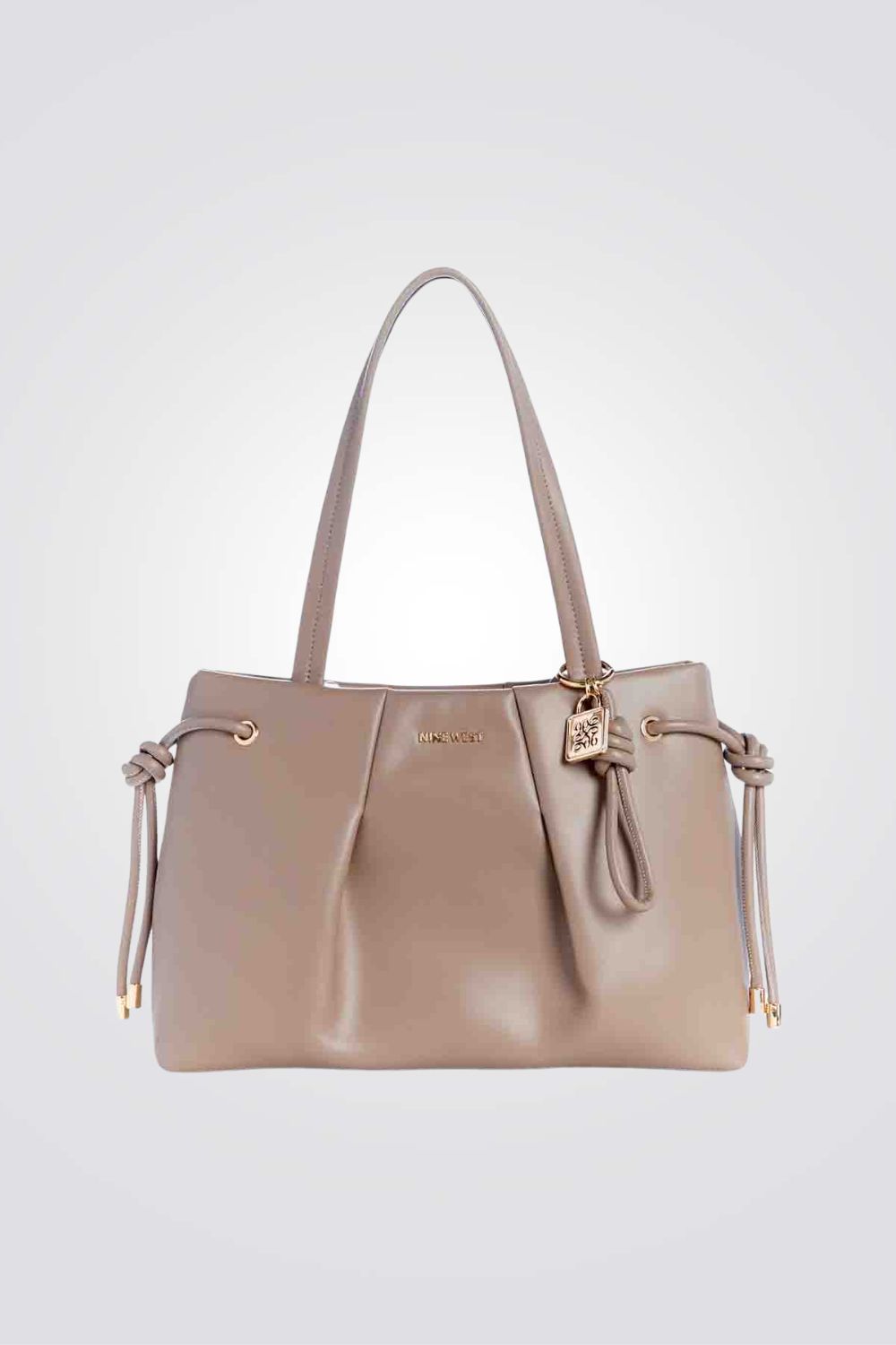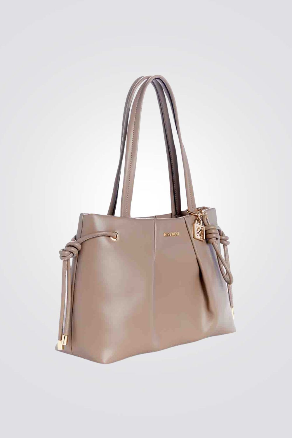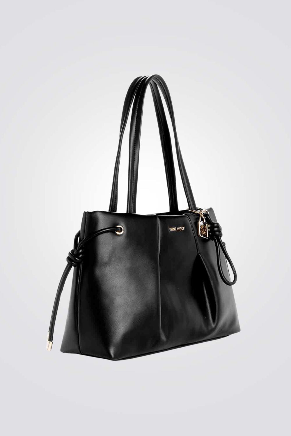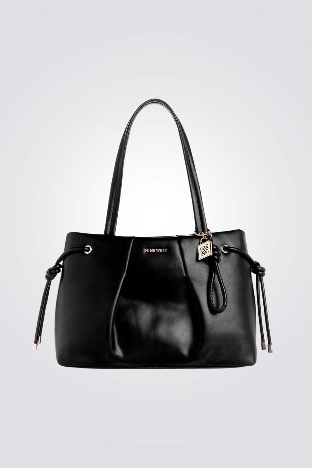 תיק נשיאה גדול מבית המותג NINE WEST בגזרת TOTE קלאסית בשילוב כיווצים ורצועות נשיאה קצרות.