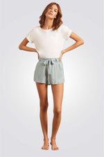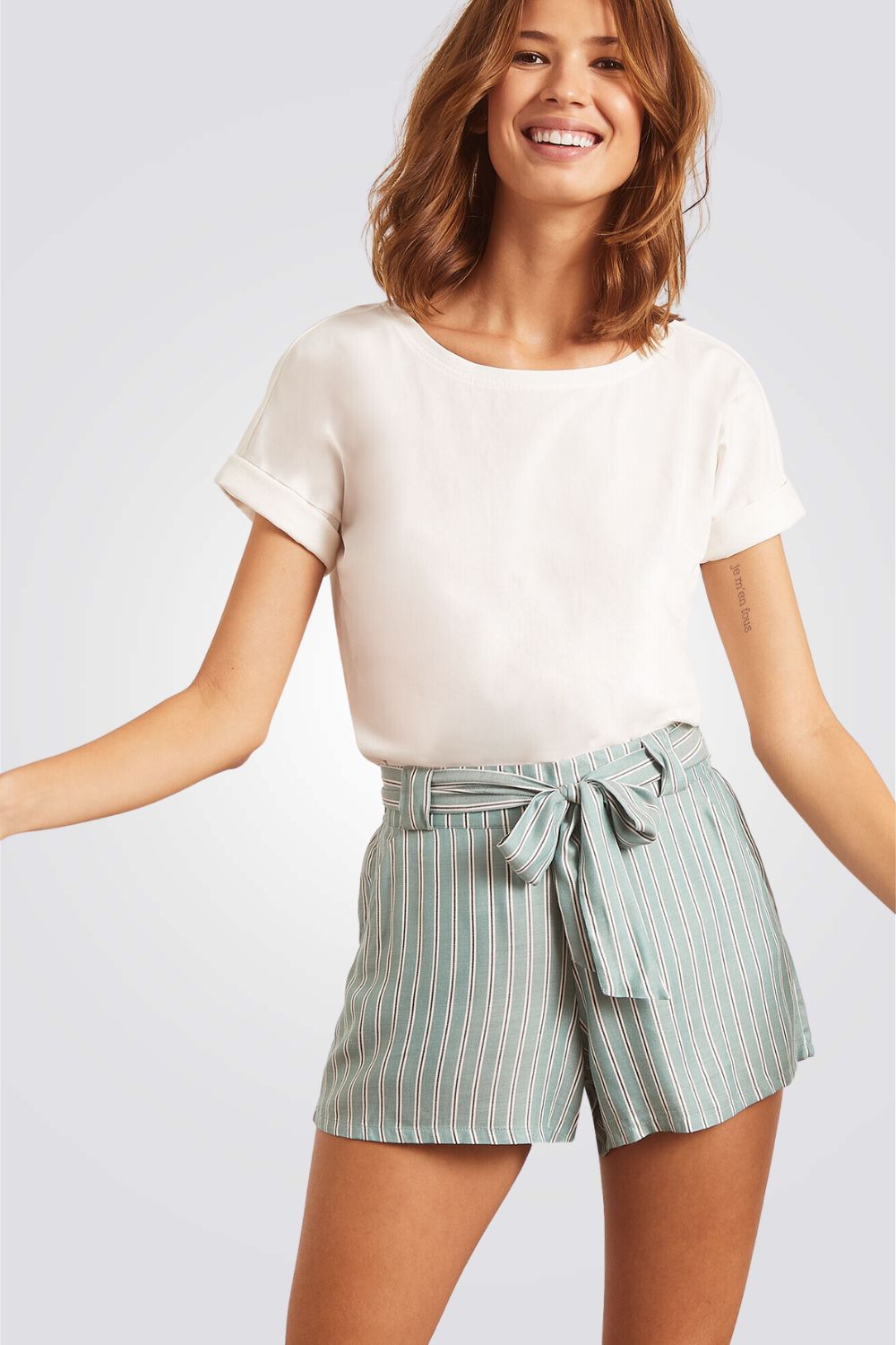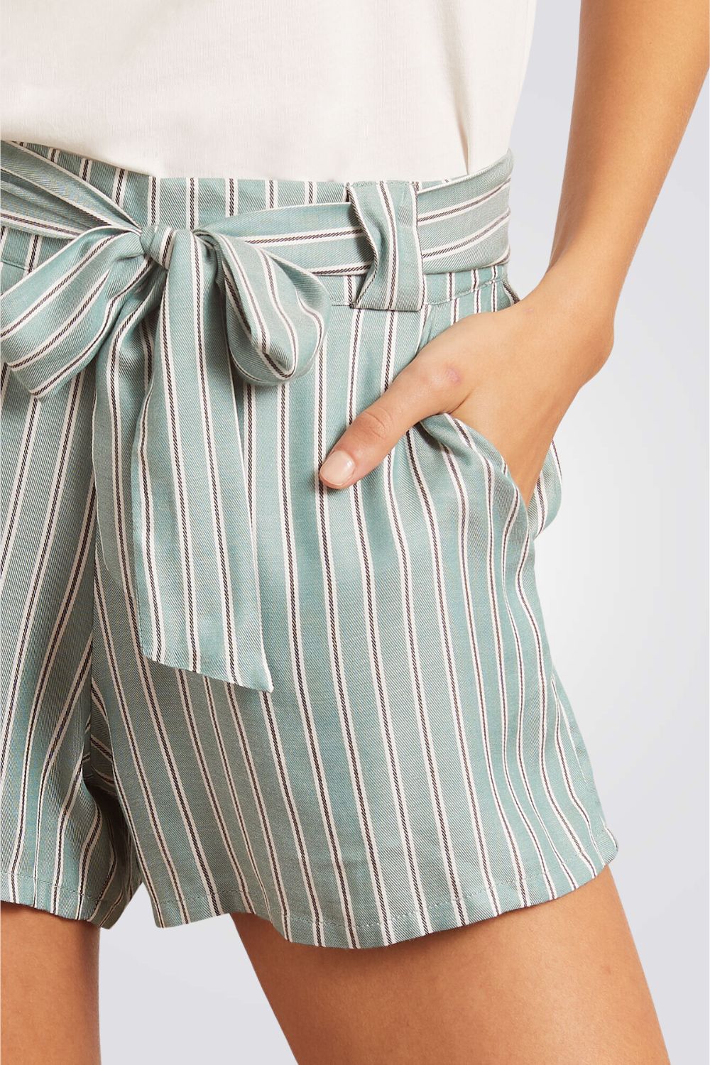 מכנסיים קצרים מבית המותג ETAM בגזרה ישרה, בעלי השרוך קשירה, שני כיסים צדדים ובהדפס פסים מיוחד.