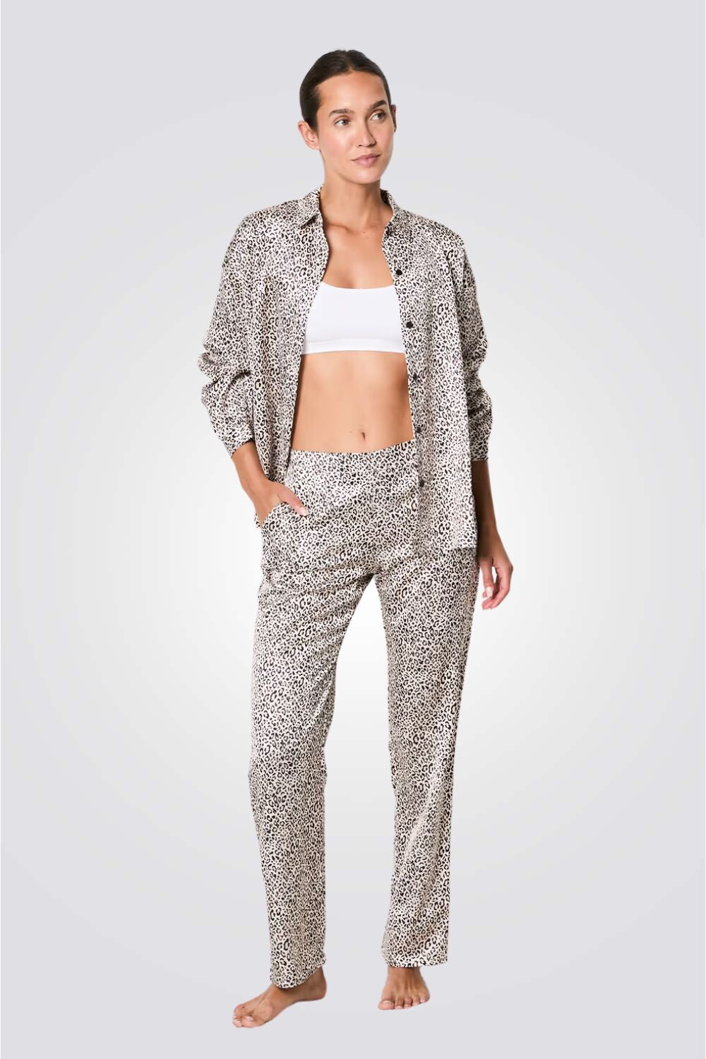 מכנסי פיג'מה ארוכים BEO בהדפס מנומר אפור