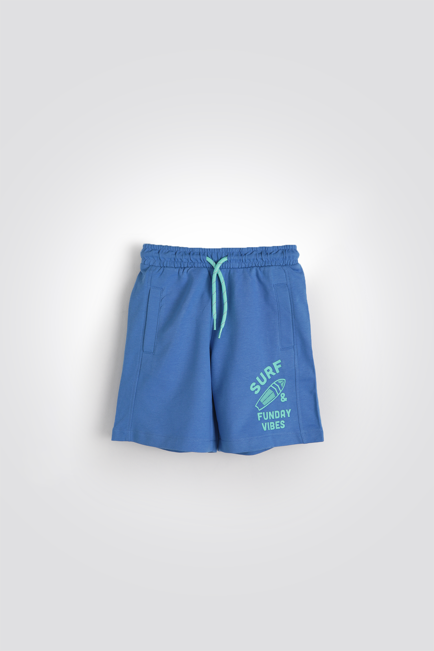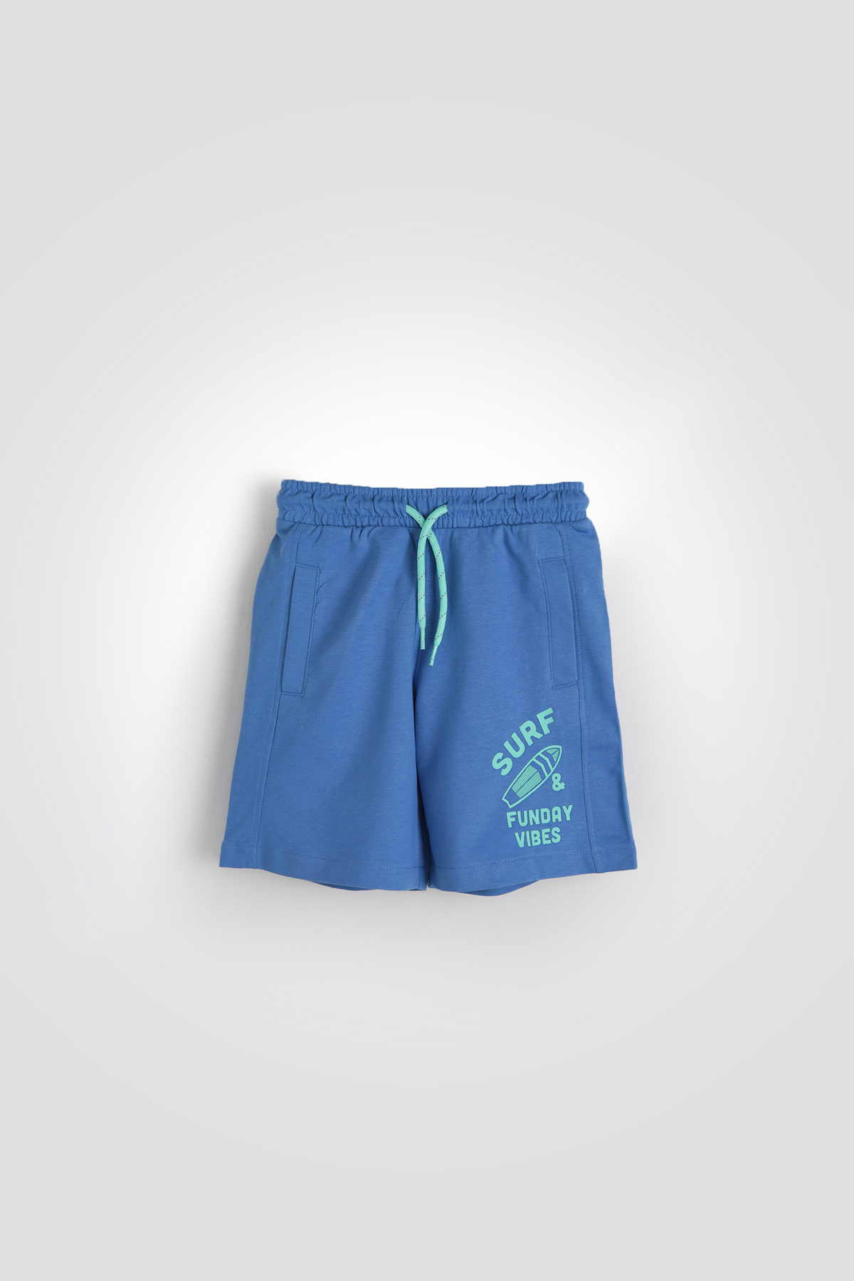 מכנסי ברמודה לילדים מבית המותג OKAIDI, עשוים מבד ג'רסי קליל וגמיש, מותן אלסטית וקשירת שרוך, שני כיסים צדדיים והדפס.