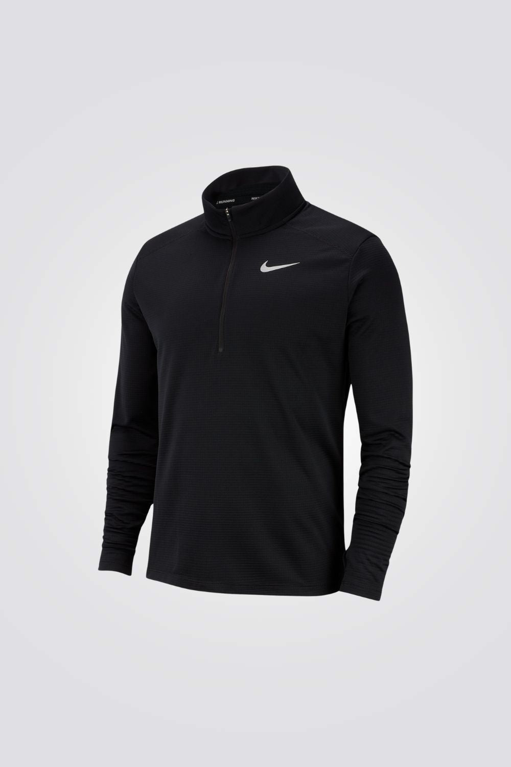 חולצת ריצה לגברים מבית המותג NIKE, בצבע שחור, עשויה מבד מנדף זיעה, קלילה ונוחה.