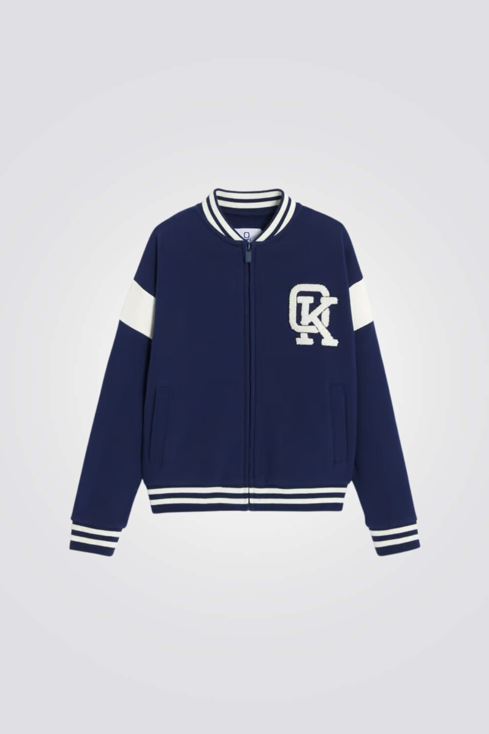 ג'קט לילדים מבית המותג OKAIDI, בצבע כחול כהה מחמם ונעים בסגנון בייסבול , צווארון עגול ,סגירת רוכסן ושני כיסים צדדיים.