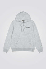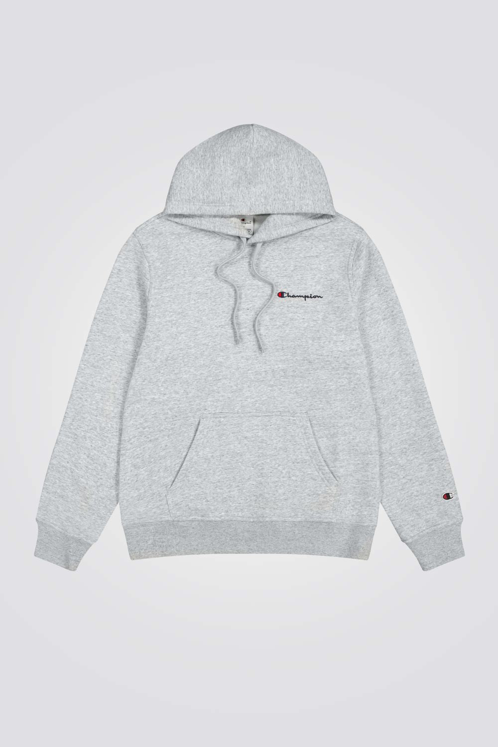 סווטשירט קפוצ'ון לגברים מבית המותג CHAMPION, בצבע אפור, מחמם ונעים עם לוגו המותג ,שרוולים ארוכים וכיס קנגרו.