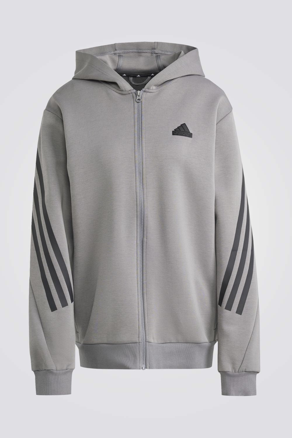 סווטשירט קפוצ'ון FUTURE ICONS 3-STRIPES בצבע אפור