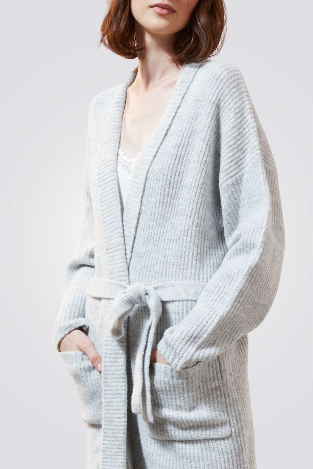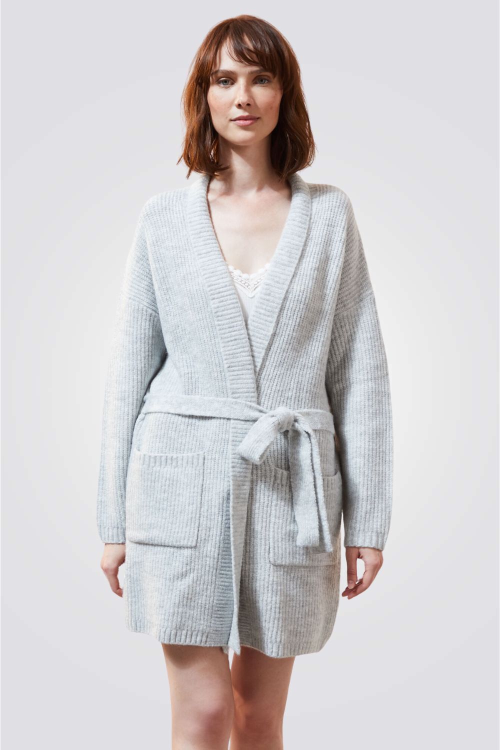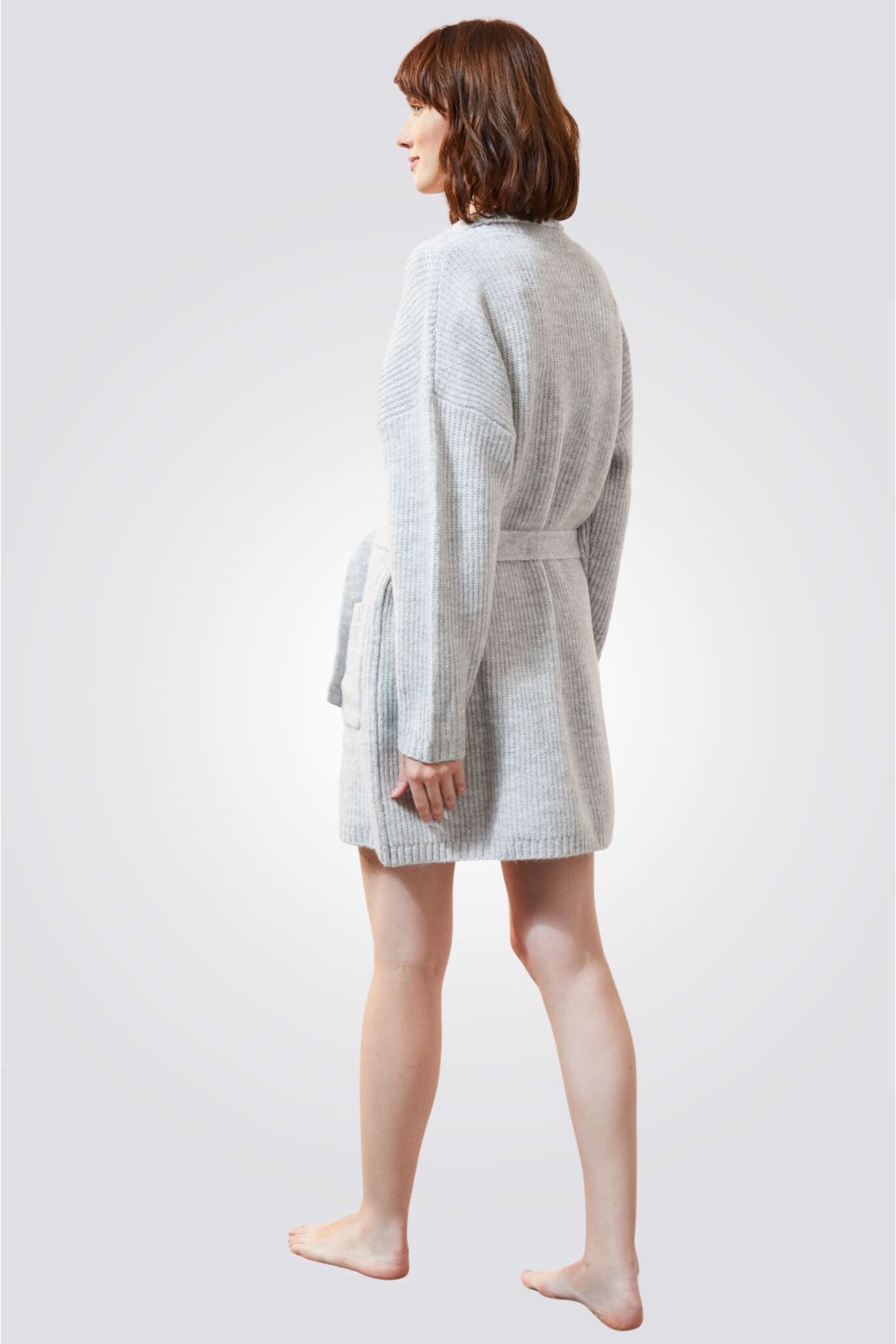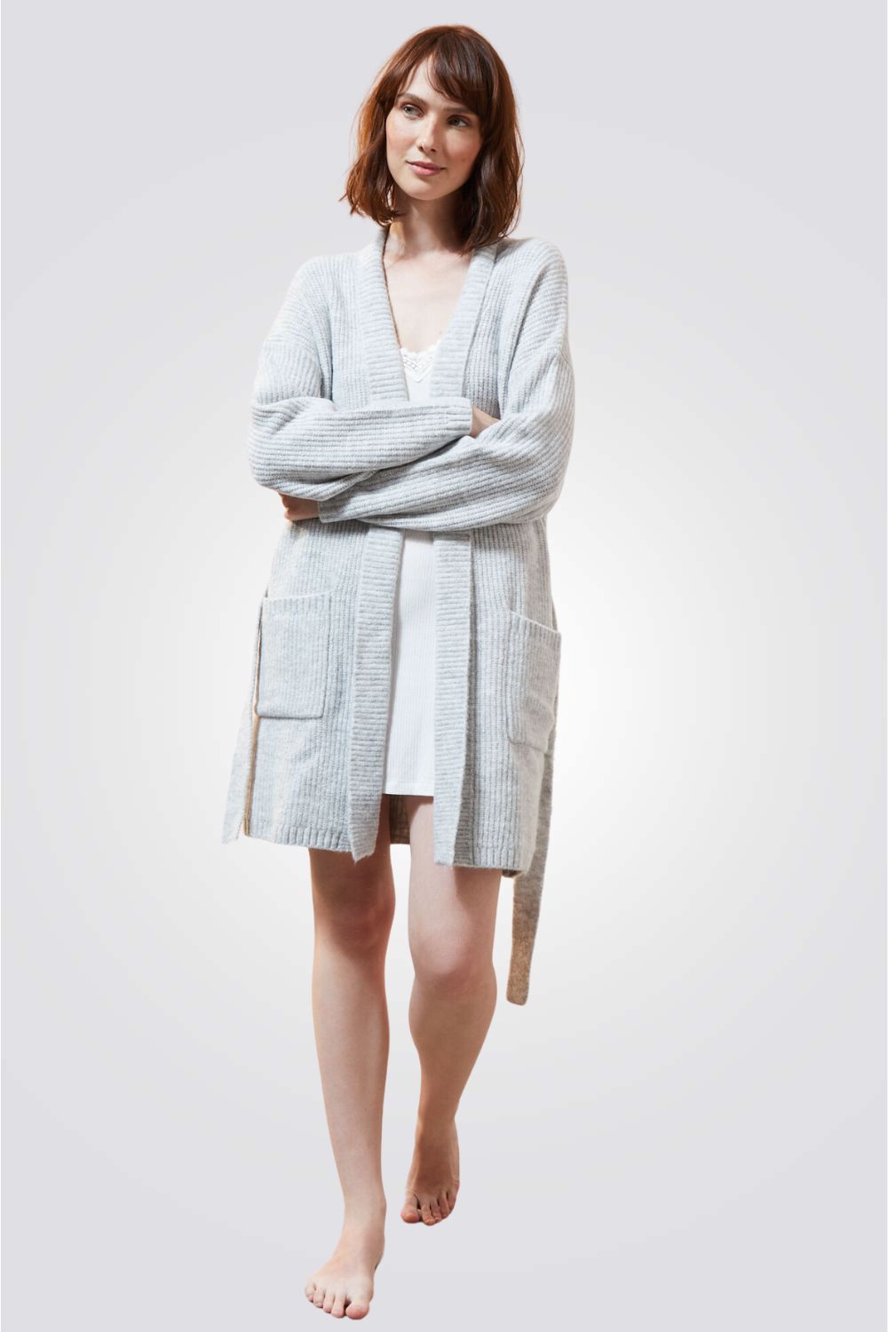 חלוק בית מבית המותג ETAM, עשוי מבד סרוג ונעים, בעל שרוולים ארוכים, שרוך קשירה ושני כיסים צידיים.