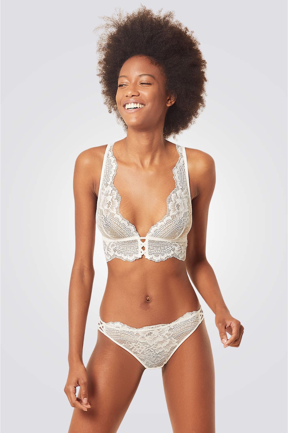 ברלט תחרה מבית המותג ETAM בעל מפתח צוואר עמוק, שרוך קשירה מתחת לקו החזה, כתפיות דקות מתכווננות וסגירת קרסים אחורית.