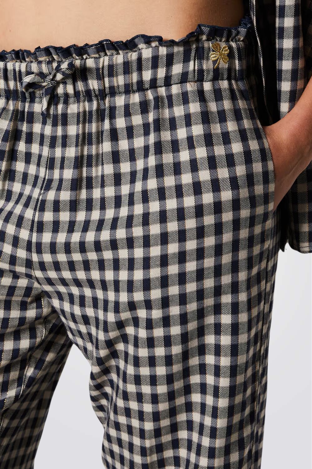 מכנסיי פיג'מה לנשים מבית המותג הצרפתי ETAM עשויים בד רך ונעים, בגזרה ישירה אורך 7/8 עם גומי בקו המותניים ושרוך קשירה קידמי.
