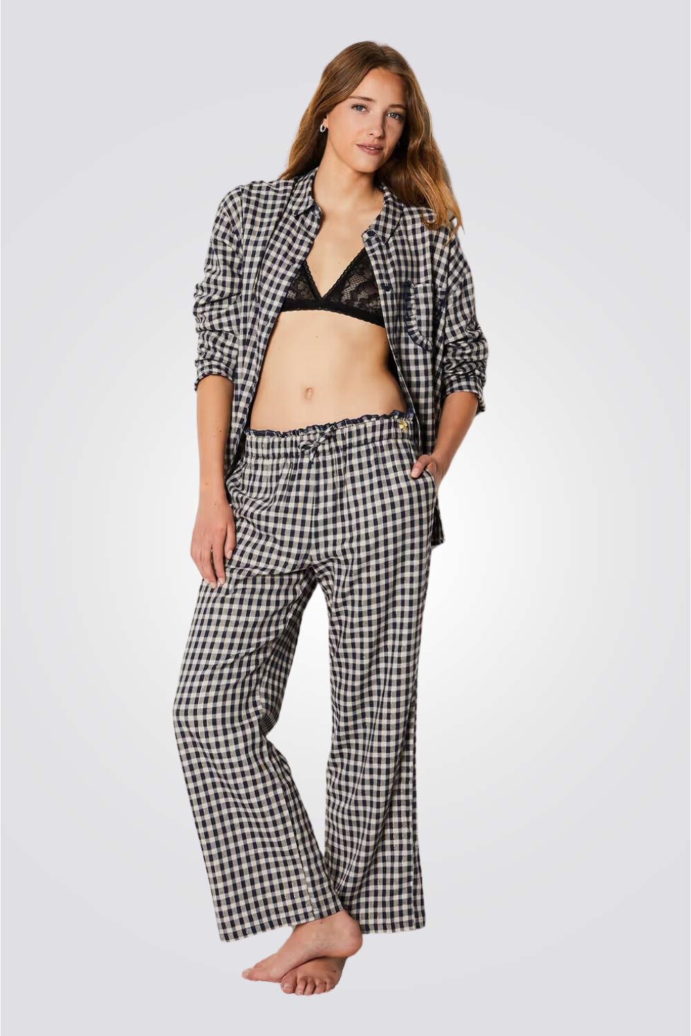 מכנסיי פיג'מה ארוכים LINDY שחור לבן