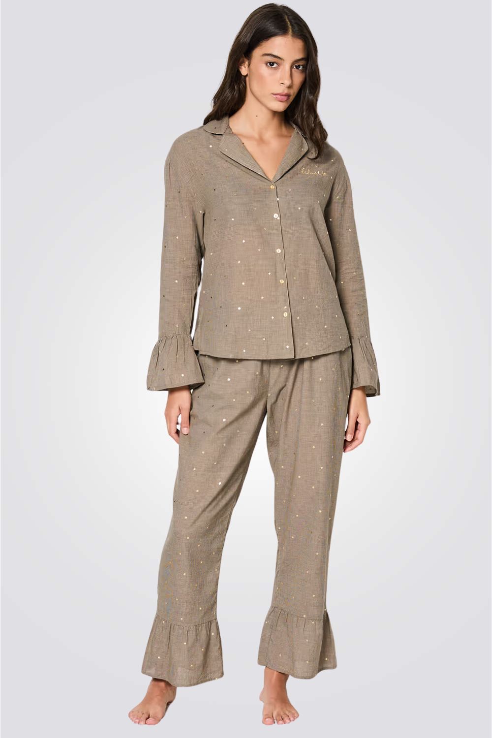 מכנסיי פיג'מה ארוכים LOUANA בצבע חום