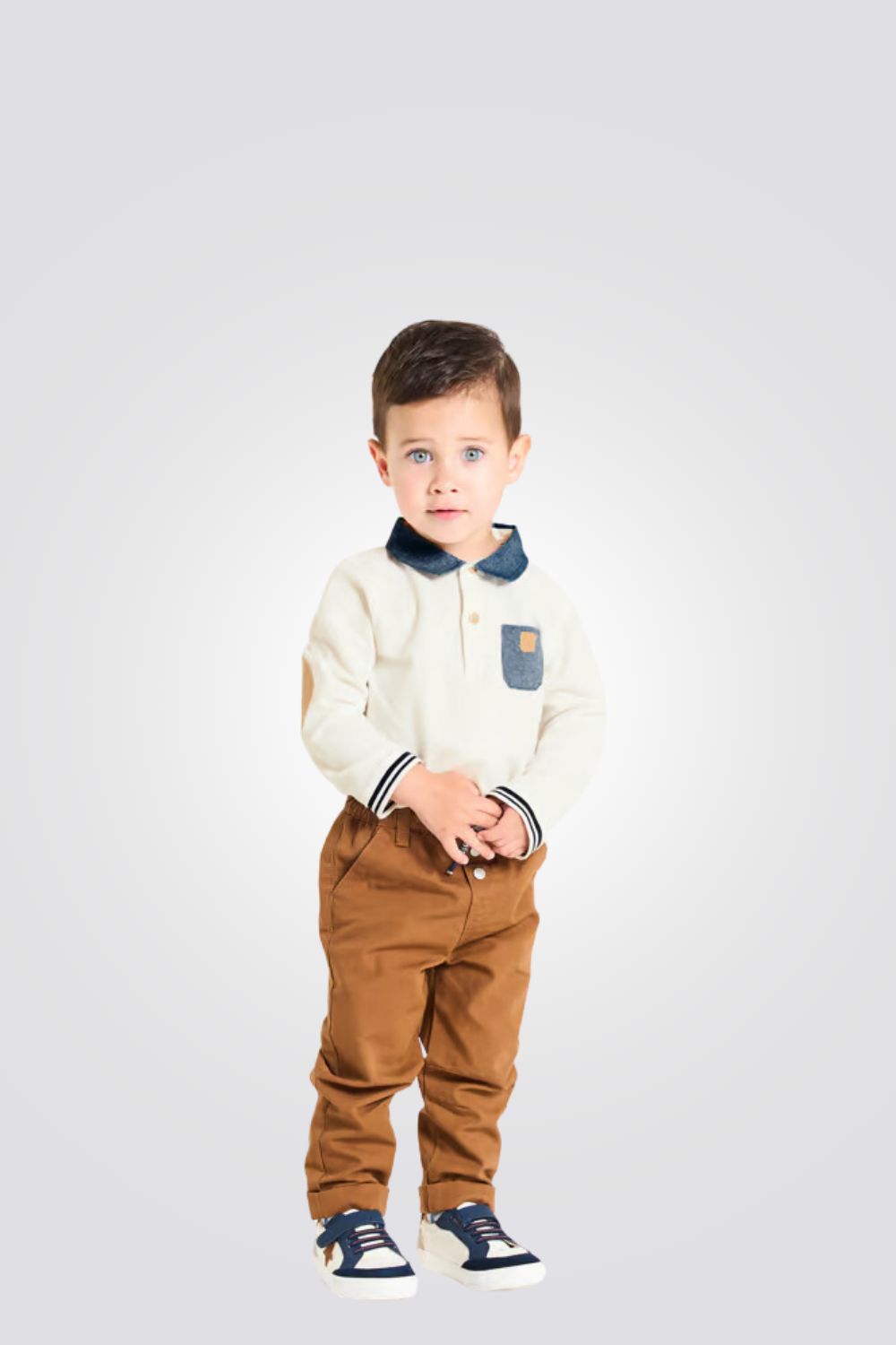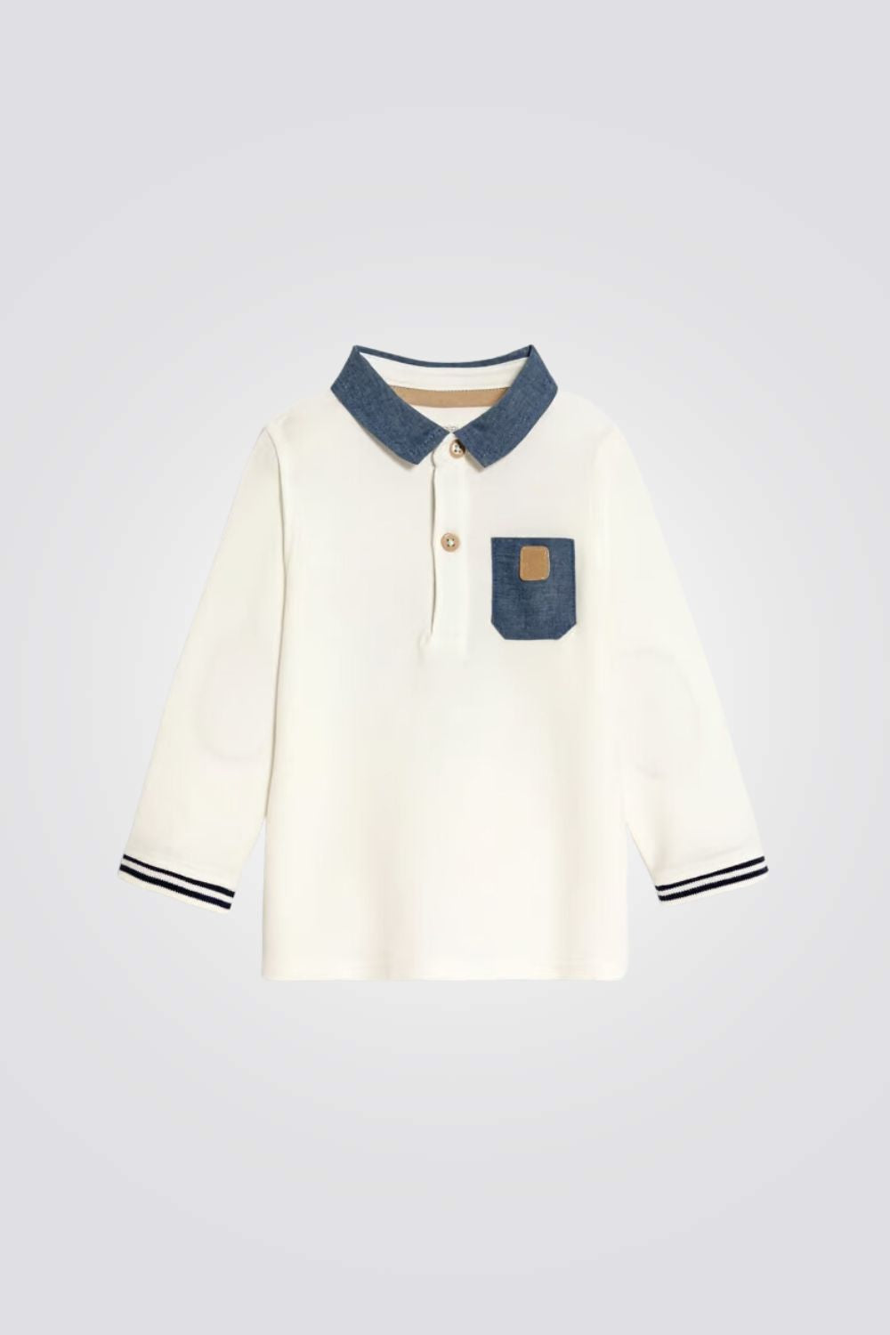 חולצת פולו ארוכה לתינוקות בצבע לבן