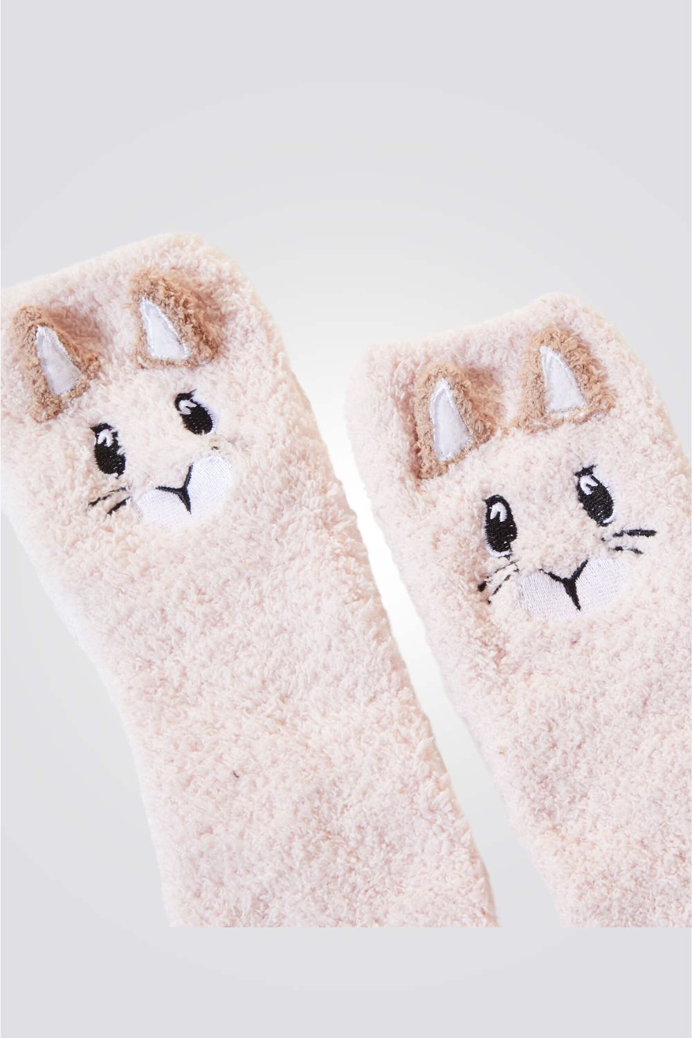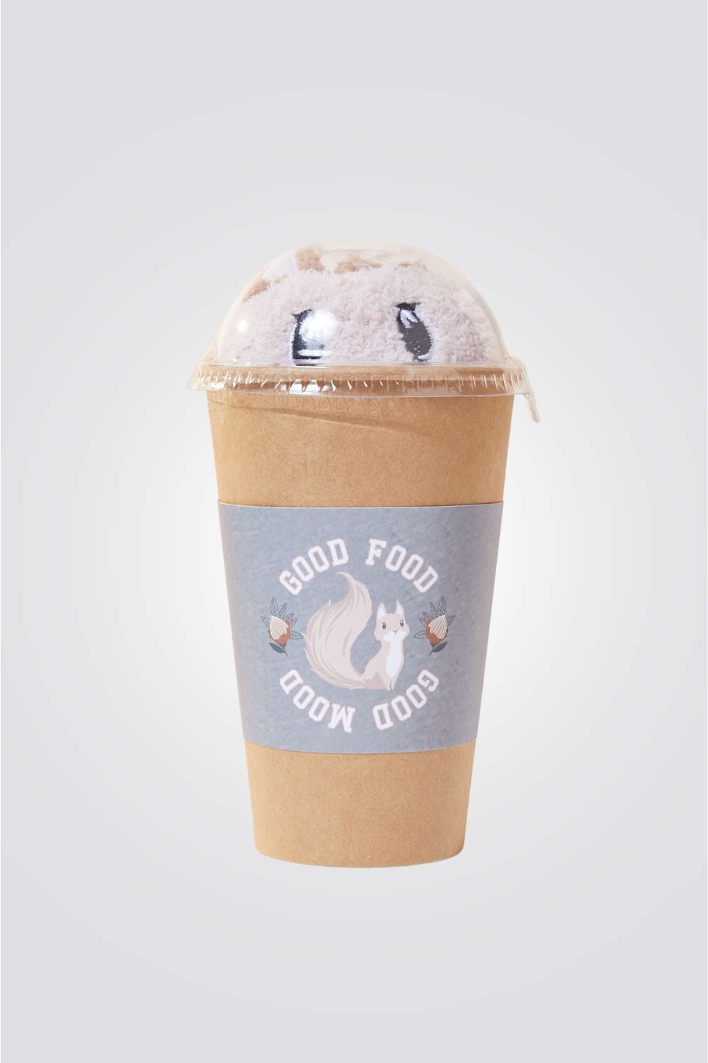 גרבי נשים מבית המותג ETAM, בצבע ורוד בייבי עם רקמה מתוקה בצורת חתול ומגיע ארוז בתוך כוס קרטון עם מכסה פלסטיק.
